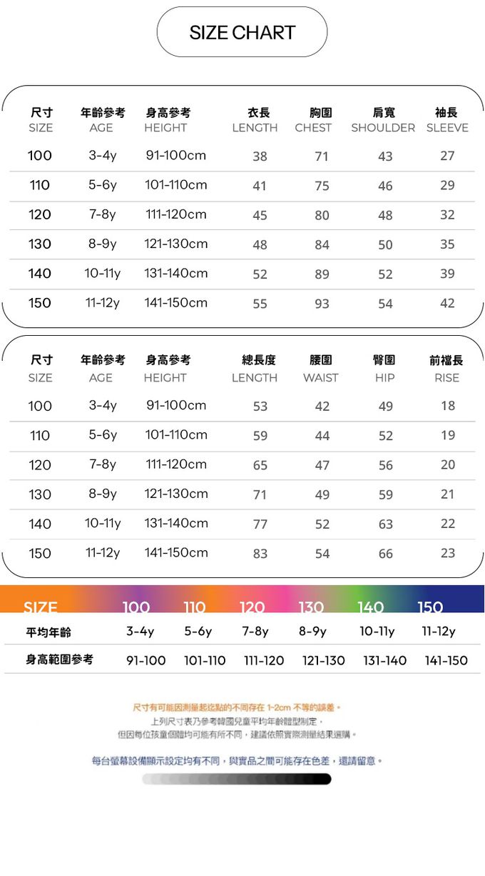 尺寸從91-150公分都有,大小孩和小寶貝都可以穿!