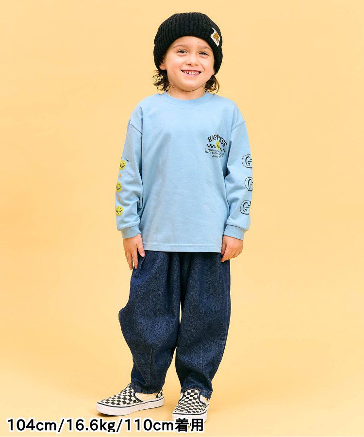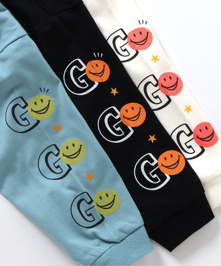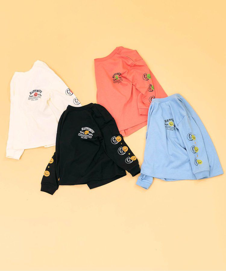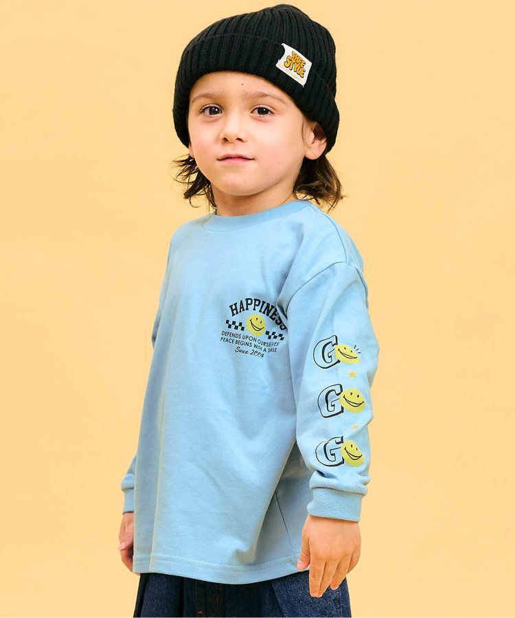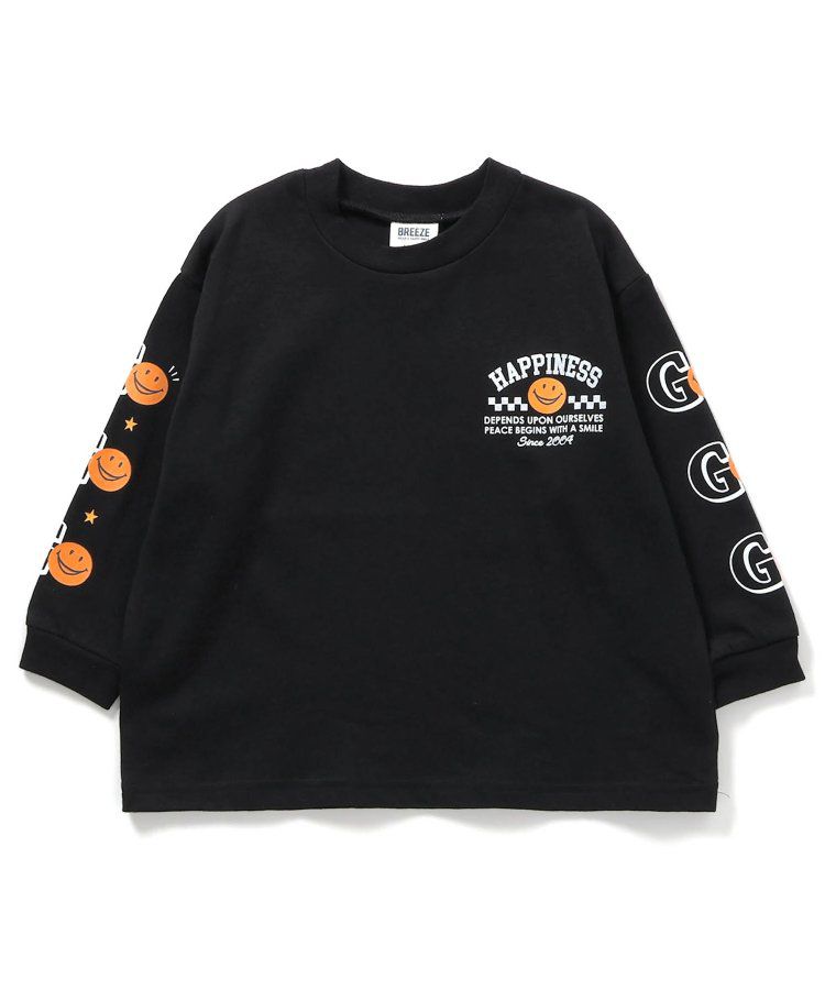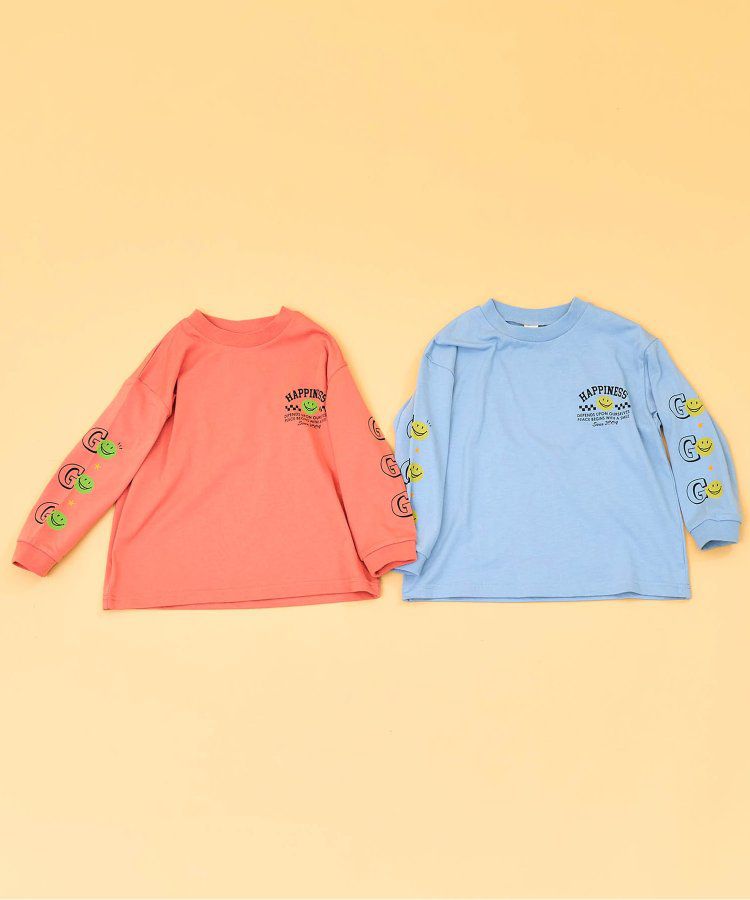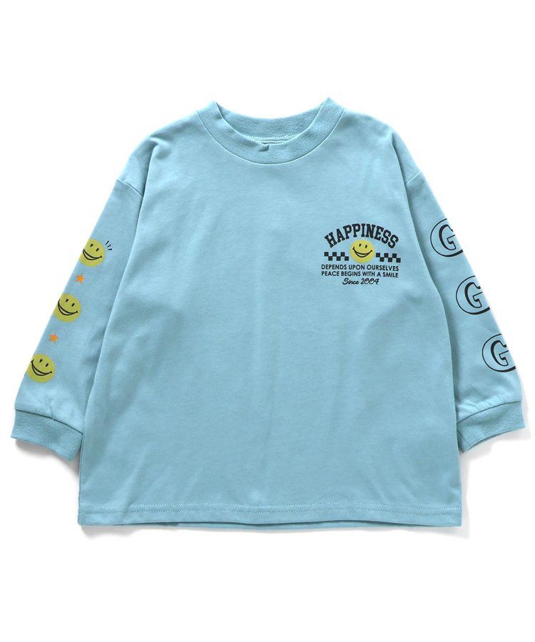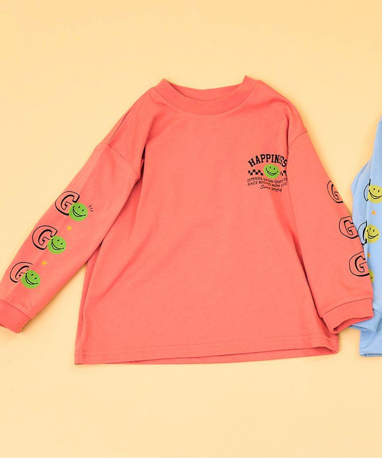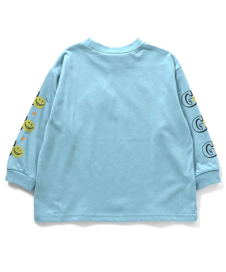 日本 BREEZE - 搶眼二側笑臉印花長袖上衣-水藍