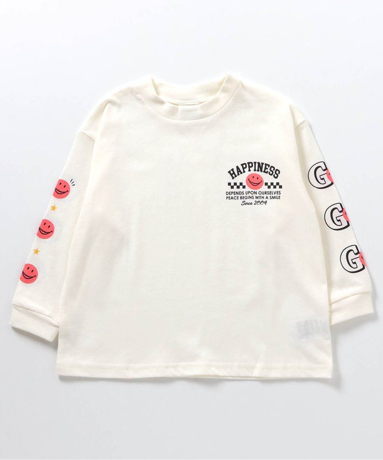 日本 BREEZE - 搶眼二側笑臉印花長袖上衣-白