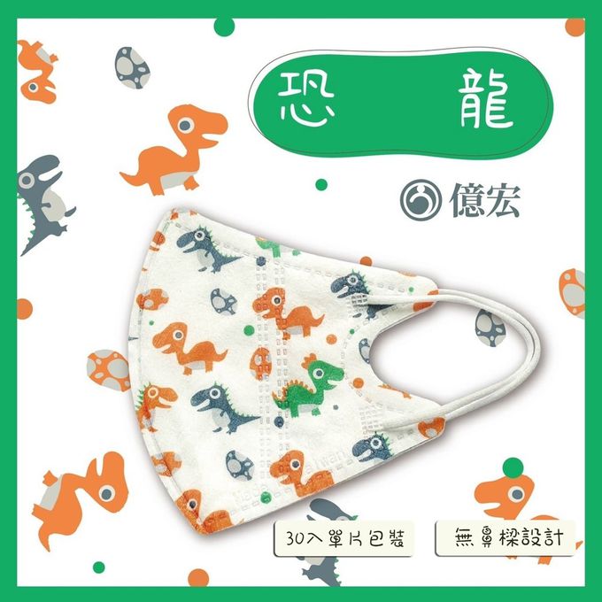 兒童3D立體醫用口罩 單片獨立包裝-恐龍-(30片單入包裝)