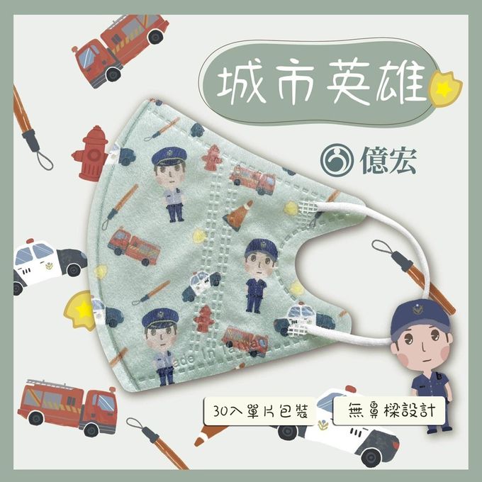 兒童3D立體醫用口罩 單片獨立包裝-城市英雄-(30片單入包裝)