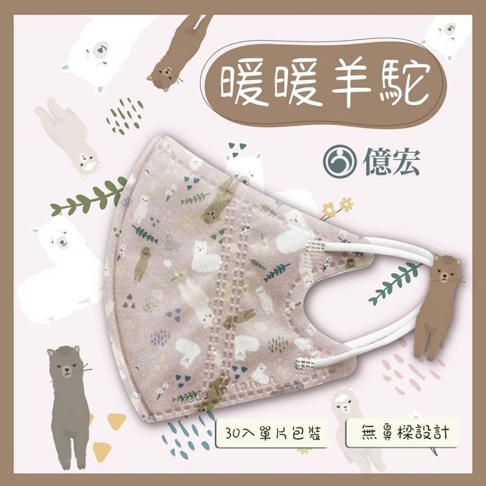 兒童3D立體醫用口罩 單片獨立包裝-暖暖羊駝-(30片單入包裝)