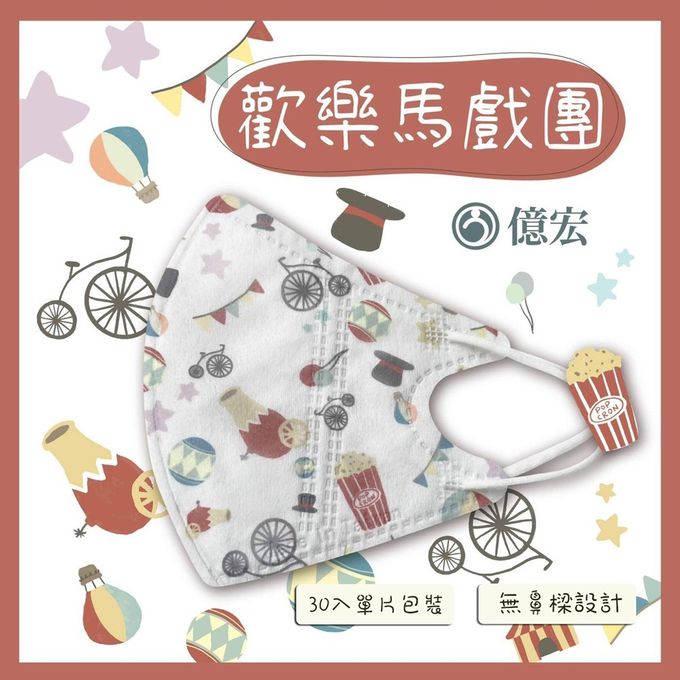 兒童3D立體醫用口罩 單片獨立包裝-歡樂馬戲團-(30片單入包裝)