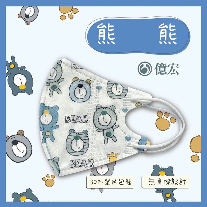 兒童3D立體醫用口罩 單片獨立包裝-熊熊-(30片單入包裝)
