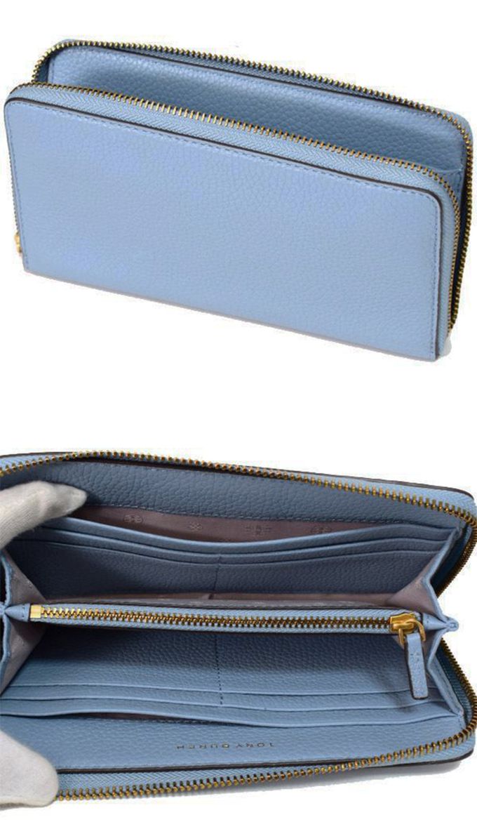 雙T-LOGO素面皮革長夾 (莫藍迪藍灰)