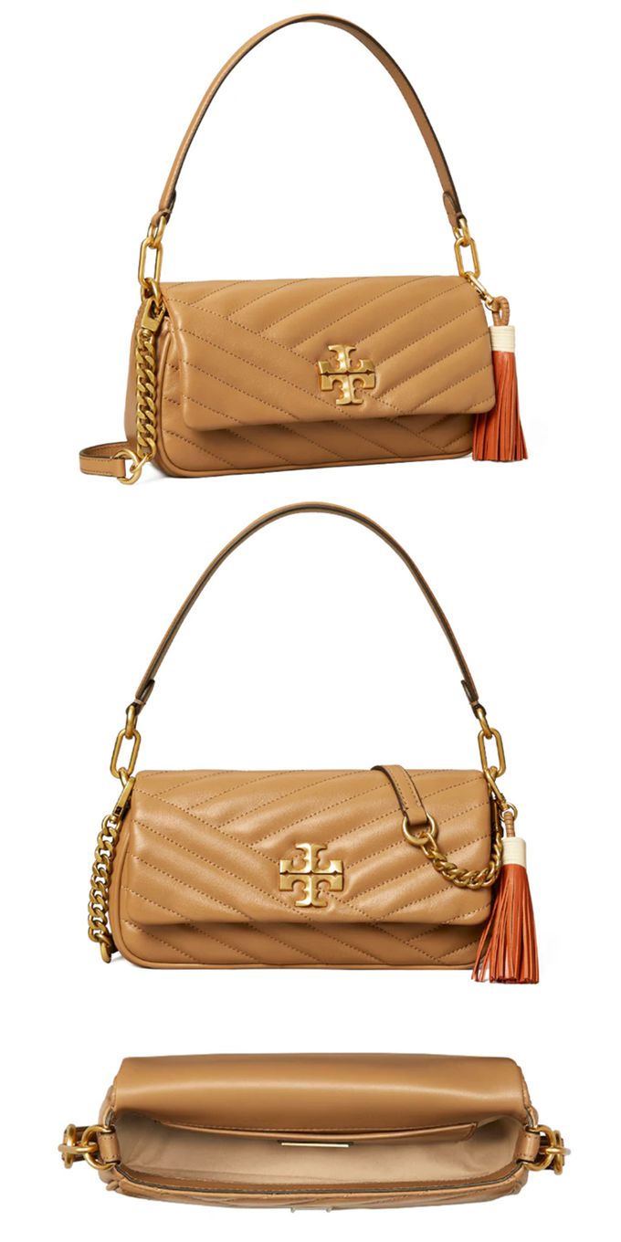 絎縫皮革流蘇翻蓋斜背鍊包 (駝色)