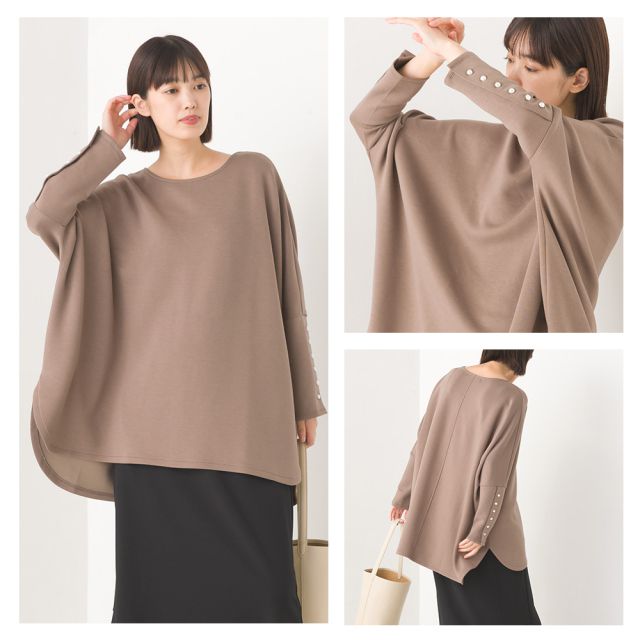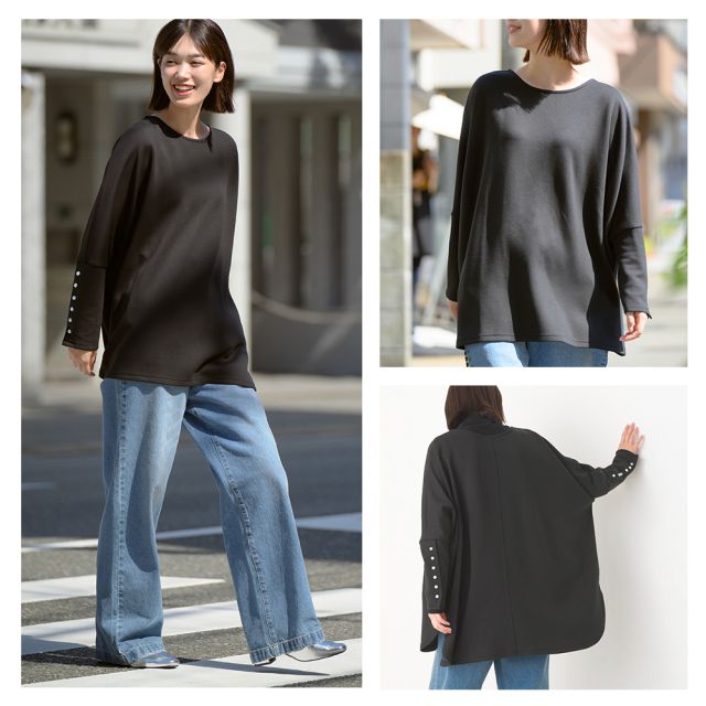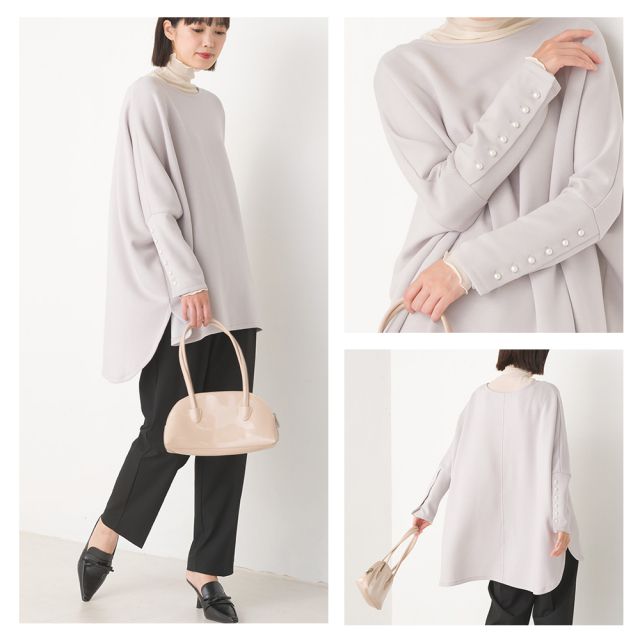 典雅珍珠袖口寬版長袖上衣