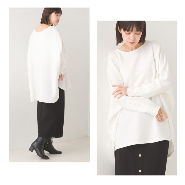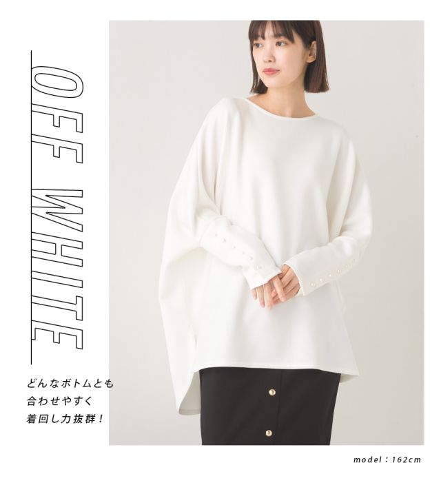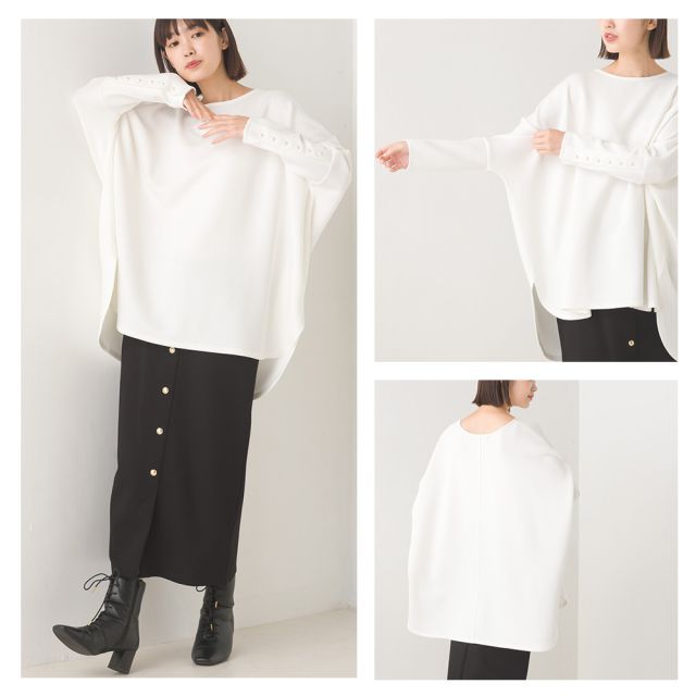 日本 OMNES - 典雅珍珠袖口寬版長袖上衣-白