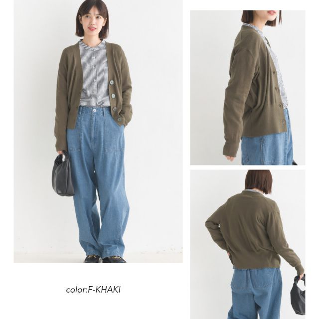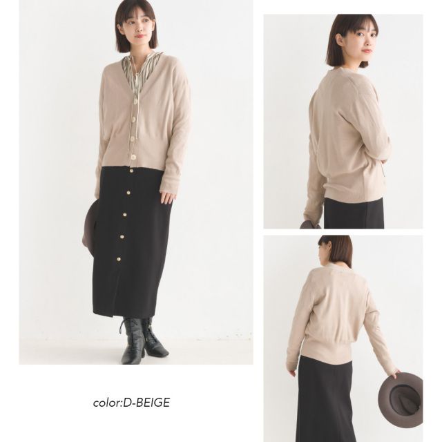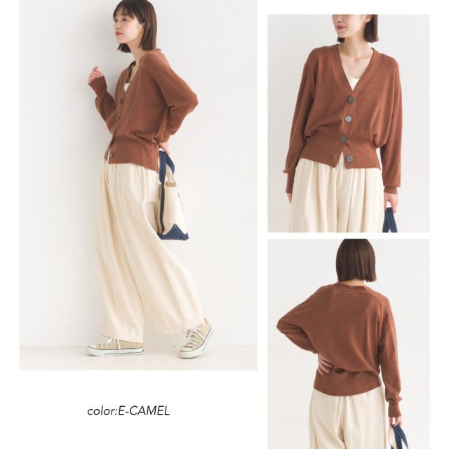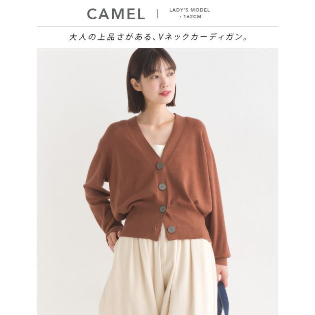 日本 OMNES - 溫柔V領圓扣針織開襟衫/薄外套-焦糖棕