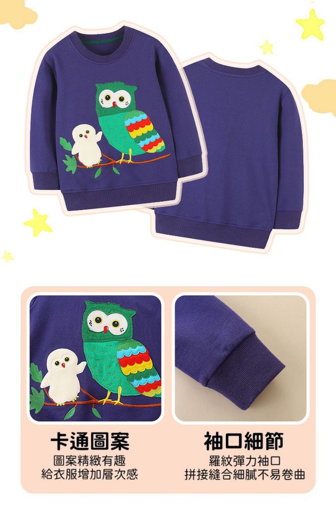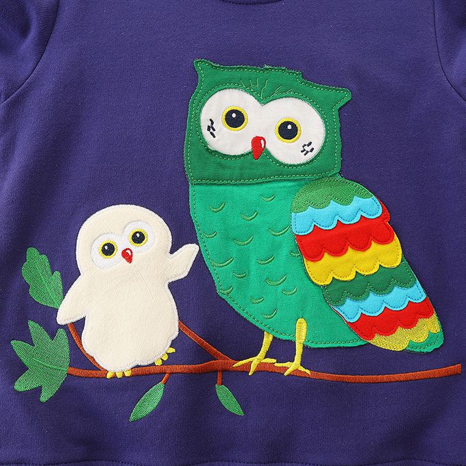 AOSTA BETTY - 純棉圓領長袖上衣/大學T-貓頭鷹-藍紫