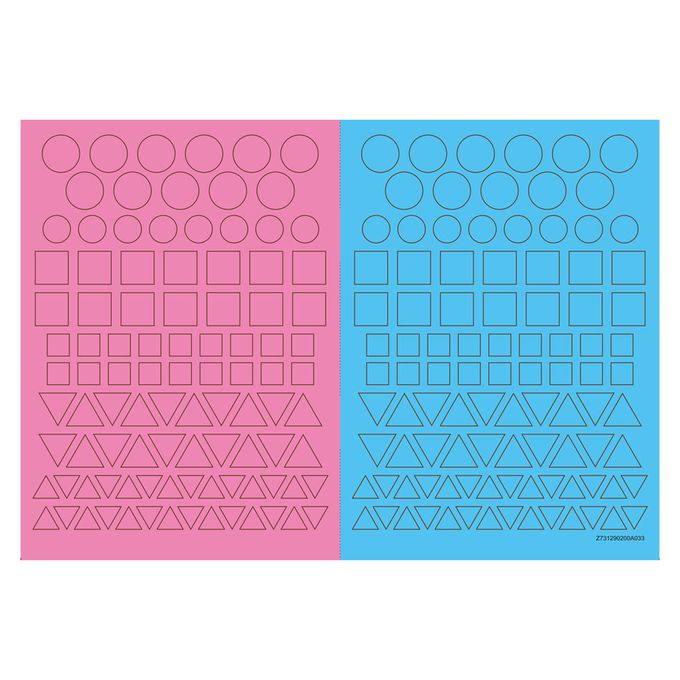 依照圖案指示把形狀貼紙貼上去,沒有上色的部份也可以自己上色讓圖案更完整!每本都有超過300張貼紙,讓寶貝發揮無限創意!