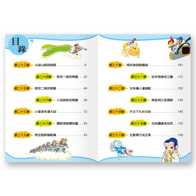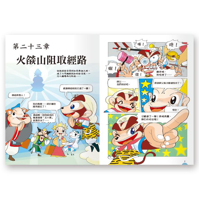 西天取經的路程困難又艱辛,三藏師徒一行人這次又遭遇了許多難關,火燄山的熱氣讓人寸步難行!小雷音寺妖魔四伏!獅駝國魔頭橫行!無底洞女妖擄人逼婚!孫悟空要如何利用智慧與勇氣來化解重重危機?順利到達西天取得真經呢?精彩的.緊 湊的故事情節,幽默.有趣的人物對白,精緻又生動的彩色圖畫,讓孩子用輕鬆的閱讀方式,領略中國古典小說的奧妙,激發孩子無限的想像力!