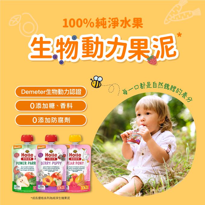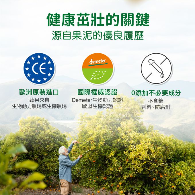 選用最高規生物動力農法的水果製成,不添加香料、防腐劑, 保留原始水果風味,並榮獲歐洲權威Demeter認證,讓寶寶吃的開心!小巧瓶身,常溫攜帶好方便