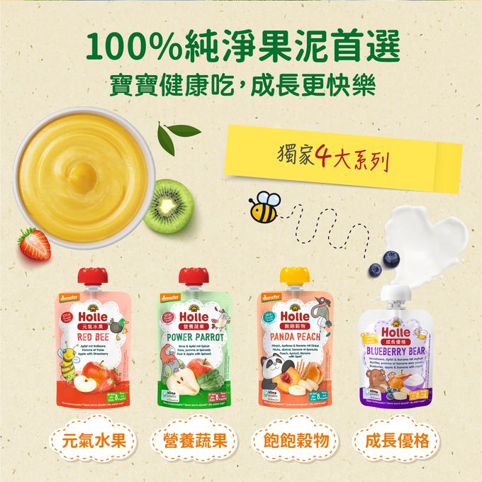 【Holle禾樂純境】生物動力果泥 元氣水果系列-藍莓恐龍(適用年齡6M+)
