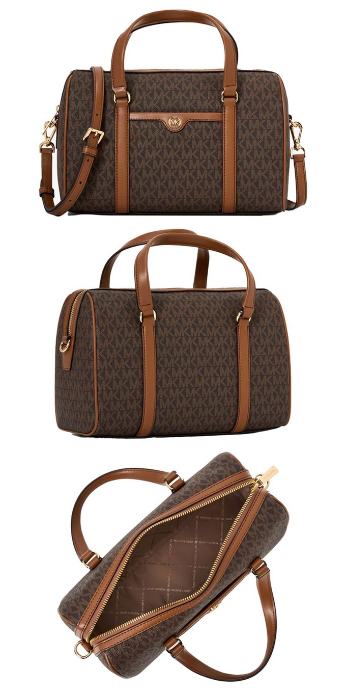 滿版LOGO拼接皮革兩用包 (咖啡駝)