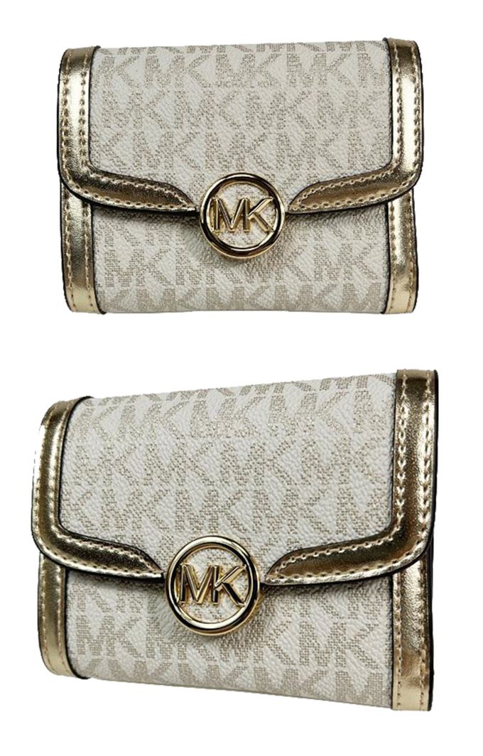 滿版LOGO-PVC拼接皮革三摺短夾 (白)
