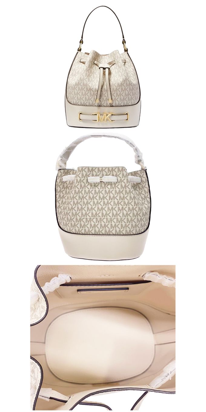 滿版LOGO拼接皮革兩用水桶包 (香草白)