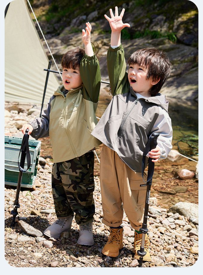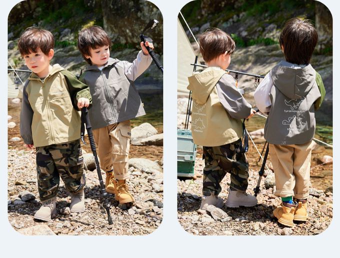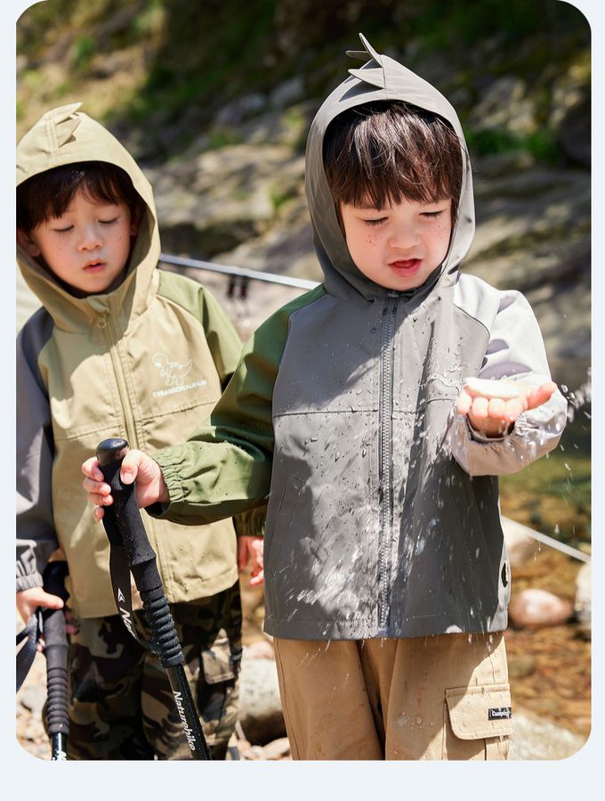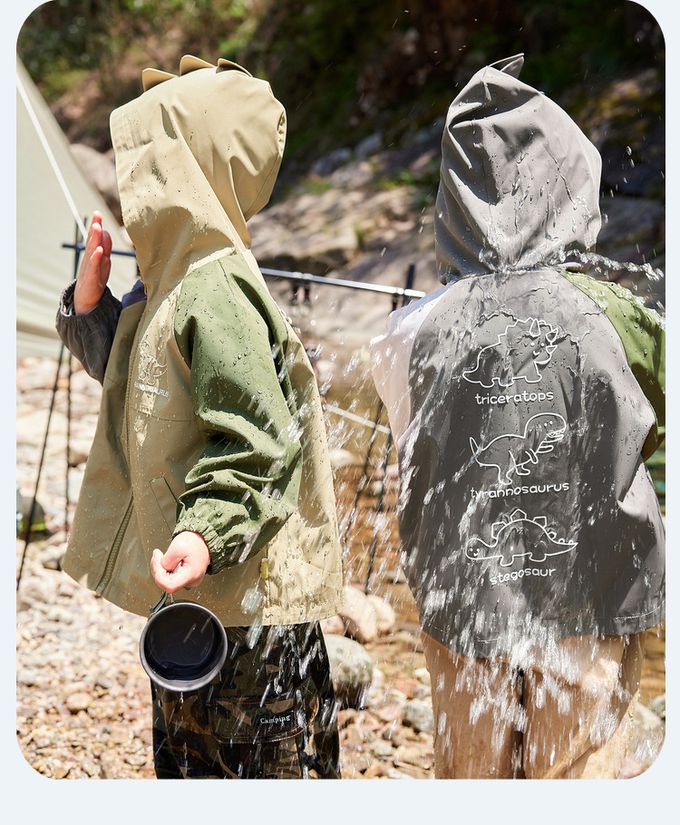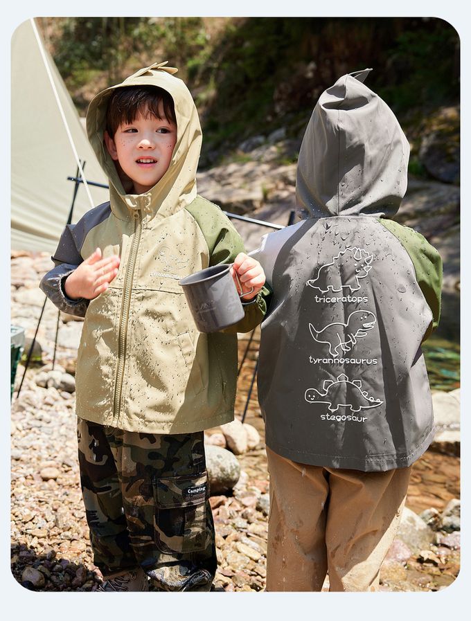 杜邦三防-防水/防油污/防風衝鋒外套-立體連帽恐龍-卡其色