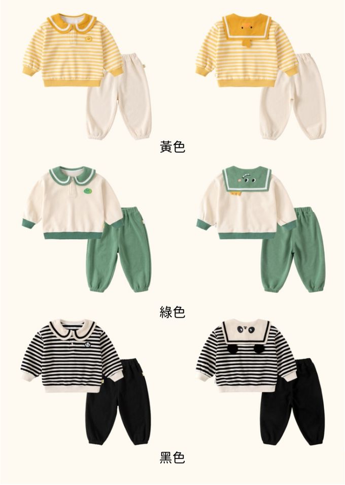 品名:娃娃海軍領長袖上衣+縮口褲兩件組