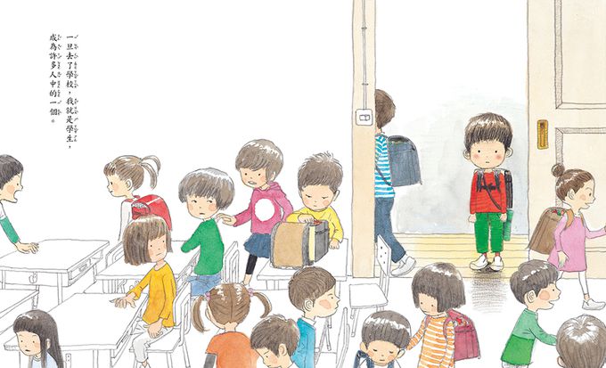 從「家」變成「學校」,從「一個」孩子變成「許多」學生之一,知名插畫家秦好史郎以生動入微的表情折射出孩子適應社會化的努力,正是孩子走出被動狀態,逐漸變得主動的過程。希望以此讓孩子感覺到自己被理解,也幫助家長讀懂孩子的心。結尾富有力量,將視野放得長遠,讓許多讀者為之感動,學校不是終點,而是我們每個人從「孩子」變成「大人」的起點。