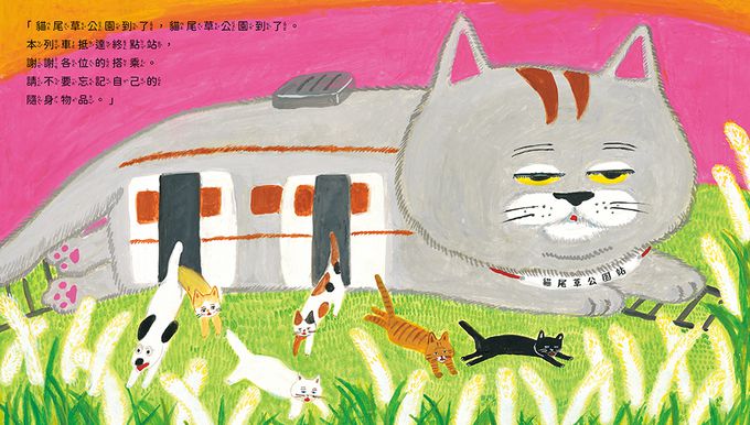 電車喵最喜歡繞路而行,他會在魚店吃飯,在屋頂上睡午覺、追老鼠,所以一直無法抵達終點。