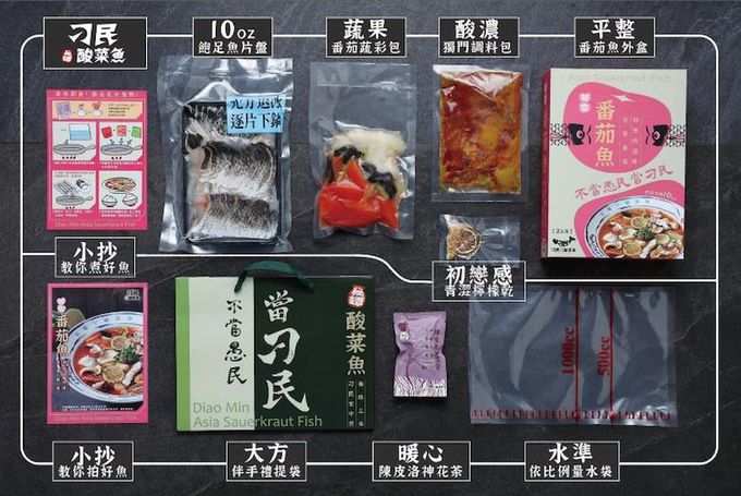 成分:秘罈酸菜魚:烏鱧魚魚片、豬油(台灣)、酸菜、芥花油、水、白蘿葡、辣椒、辣椒乾、鹽、特砂、白醋、米酒、薑、菜籽油、棕櫚油、蒜頭、麥纖麩皮、玉米澱粉、蒜萃取物、藤椒、青花椒、大豆油、雲耳、白胡椒、白芝麻、芝麻油、芝麻香料、香芹籽、食品添加物「L-麩酸鈉、琥珀酸鈉、胺基乙酸、5'-次黃嘌呤核苷磷酸二鈉、5'-鳥嘌呤核苷磷酸二鈉、DL-胺基丙酸、檸檬酸鈉、L-天門冬酸鈉、麥芽糊精、蔗糖 素(甜味劑)、甘草酸銨(甜味劑)、雞油、雞肉、洋蔥粉、複方香料(葵花油、香料)、豬脂(西班牙)、辛烯基丁二酸鈉澱粉、脂肪酸甘油酯、二氧化矽、混合濃縮生育醇(抗氧化劑)、L-抗壞血酸棕櫚酸酯(抗氧化劑)、食品級冰醋酸、檸檬酸、DL-蘋果酸、多磷酸鈉、焦磷酸鈉 初戀番茄魚:烏鱧魚角片、牛番茄、番茄糊、芥花油、豬脂、料理米酒、麥芽糊精、辛烯基丁二酸鈉澱粉、脂肪酸甘油脂、二氧化矽、混合濃縮生育醇、抗壞血酸棕櫚酸脂、蒜頭、麥纖皮棕櫚油紅蔥頭米粉、麸酸鈉、雞油、糖、雞肉、5次黃哈核昔磷酸二鈉、5鳥哈核昔磷酸二鈉、洋蔥粉、檸檬酸、葵花油、香料、胺基乙酸、DL-胺基丙酸特砂、氧化納、碘酸鉀、芝麻、琥珀酸二鈉、檸檬酸鈉、L-天門冬酸鈉、蔗糖素、甘草酸胺、月桂葉粉、改性澱粉、樹脂末、小麥麵粉、龍蝦精華(含有甲殼類動物)、全脂奶粉、酵母精華、調味劑、增味劑、色素、香料、穩定劑、水、釀造醋、香辛料、九層塔、洋香菜葉、白胡椒、青梅、檸檬、食品級冰醋酸、DL蘋果酸、醋酸、雲耳、洋蔥、芹菜、黑胡椒 陳皮洛神茶:橘子皮、洛神花、糖、鹽、食添加物「紐甜、阿斯巴甜、甜菊糖、糖精鈉鹽、環已基(代)磺胺酸鈉、亞硫酸鈉(苯酮尿症患者不宜食用)、苯甲酸、己二烯酸」