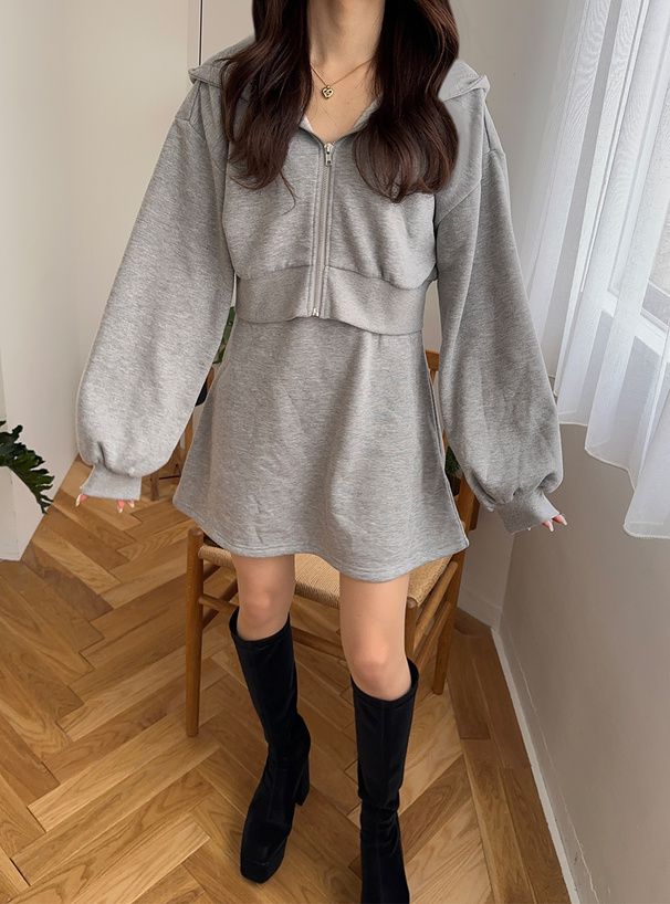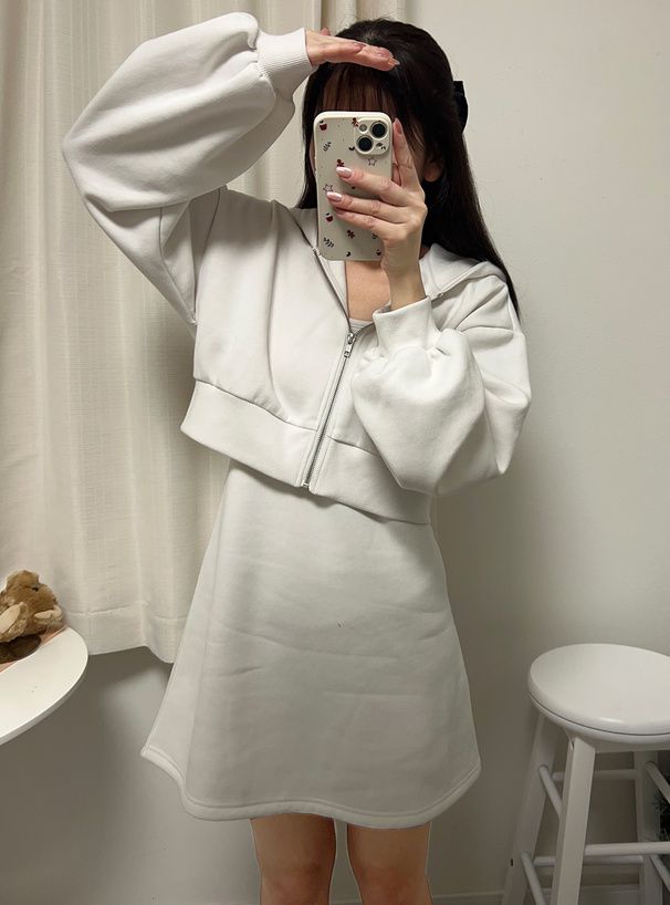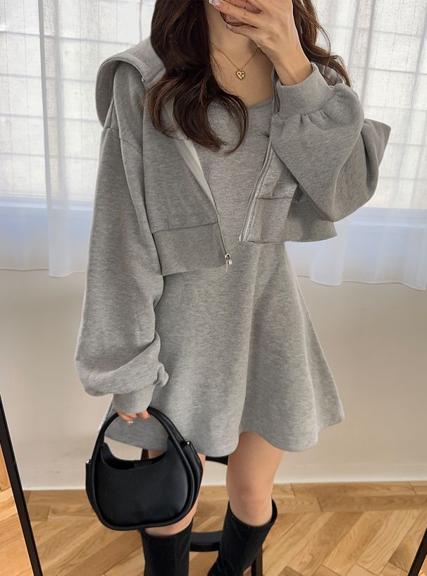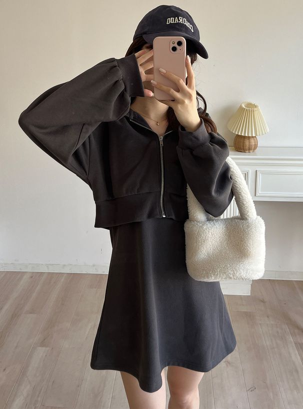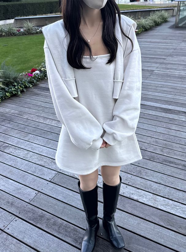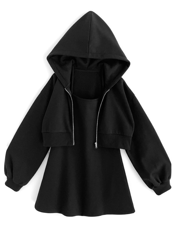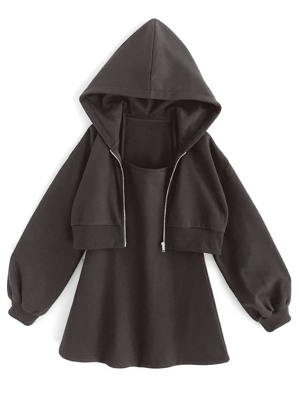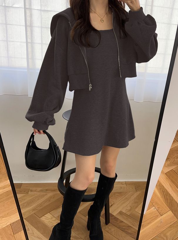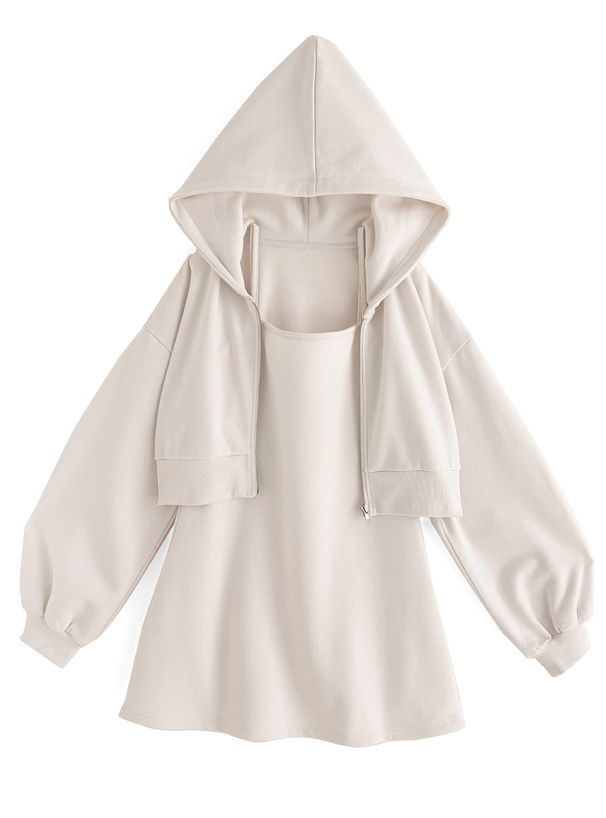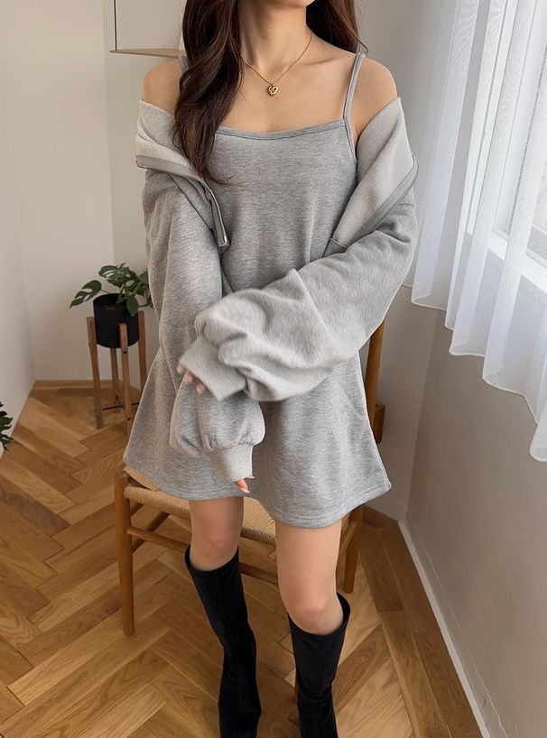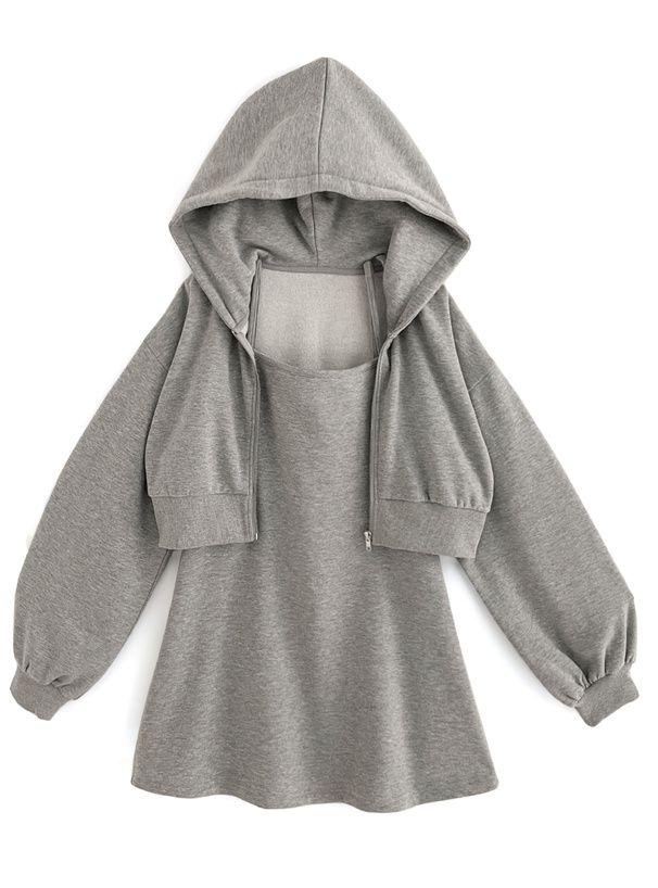 運動風細肩帶洋裝+連帽外套(2件組)