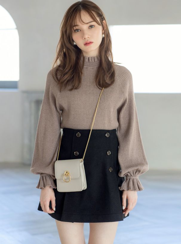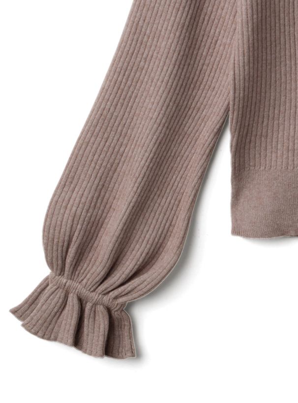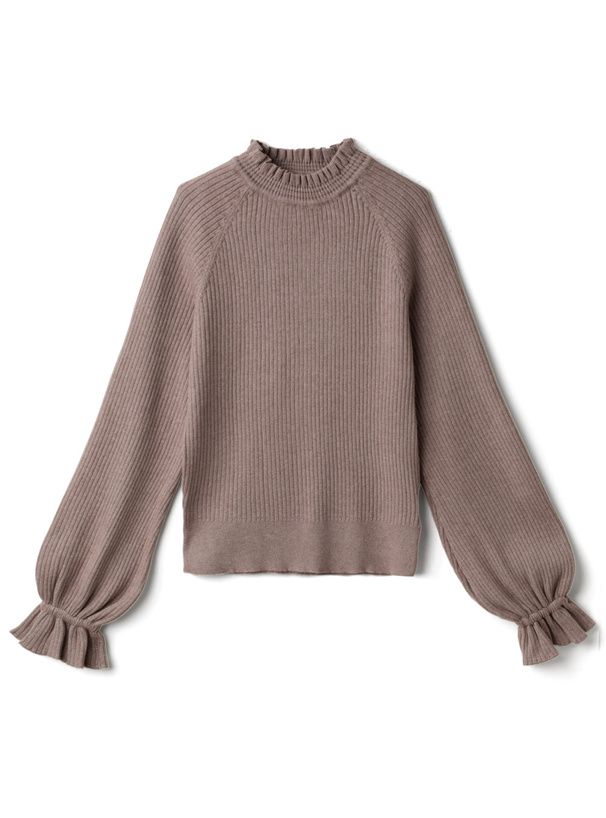 日本 GRL - 糖果袖荷葉領針織上衣-摩卡