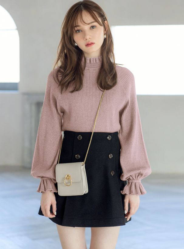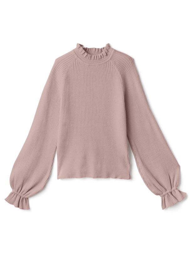 日本 GRL - 糖果袖荷葉領針織上衣-煙燻粉