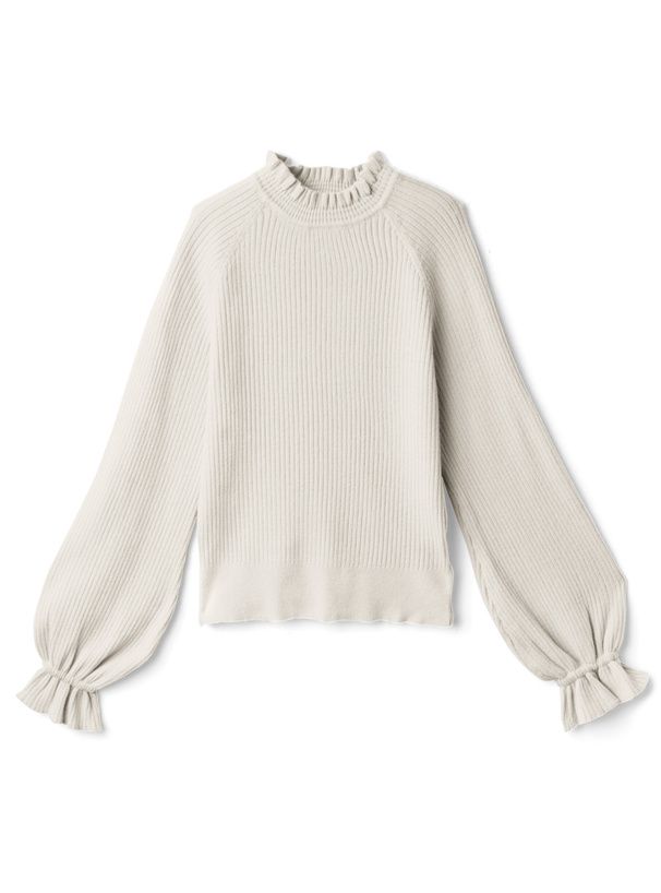 日本 GRL - 糖果袖荷葉領針織上衣-氣質米