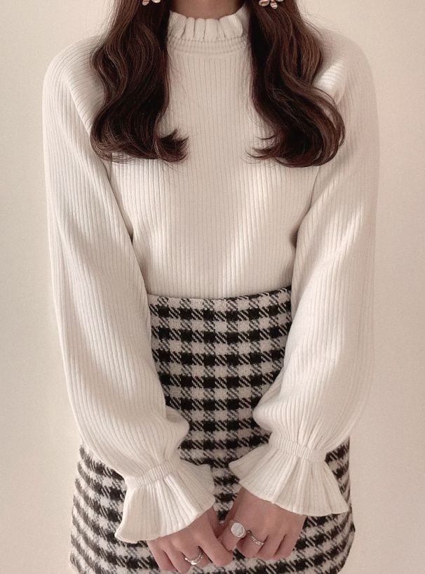 • 品名:糖果袖荷葉領針織上衣