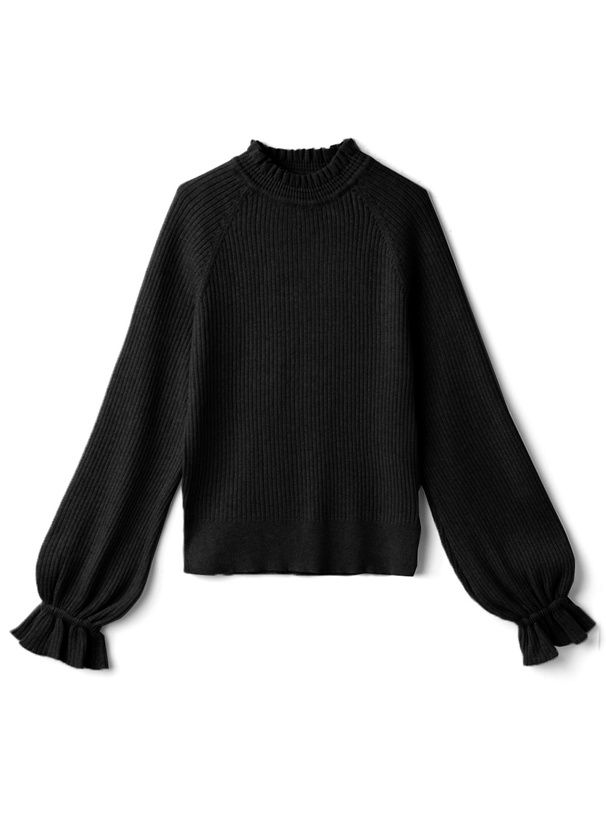 日本 GRL - 糖果袖荷葉領針織上衣-知性黑
