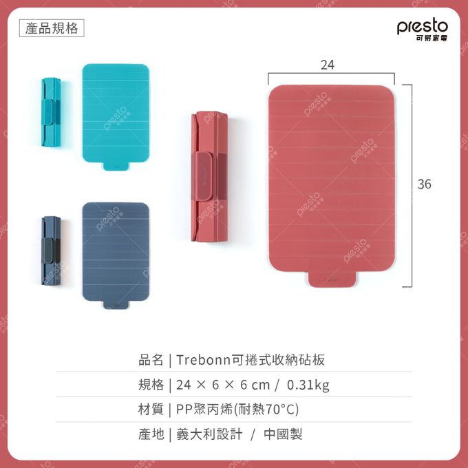 可捲式收納砧板-珊瑚紅、水藍、灰藍