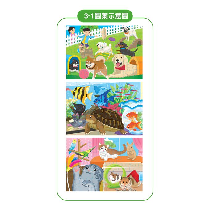 兒童益智拼圖 STEP 3-1 動物系列-三小盒 24片/35片/48片