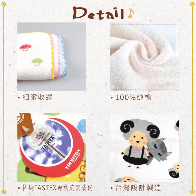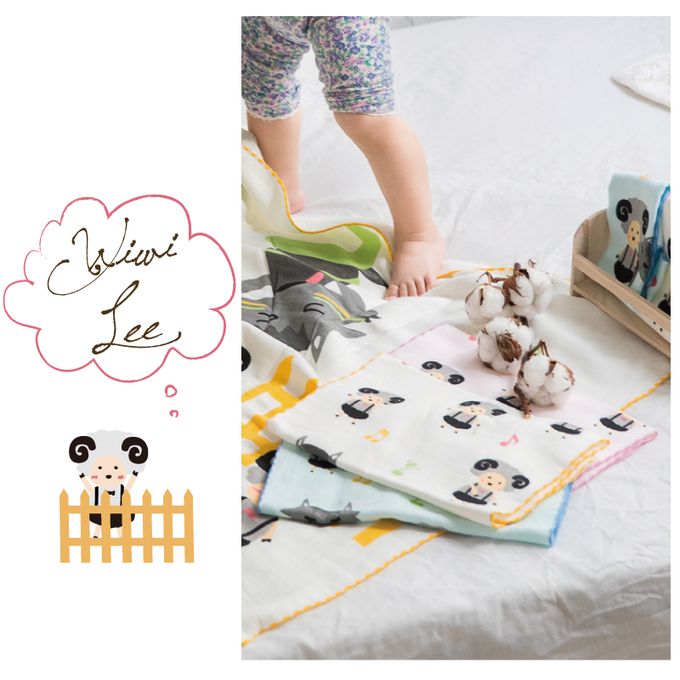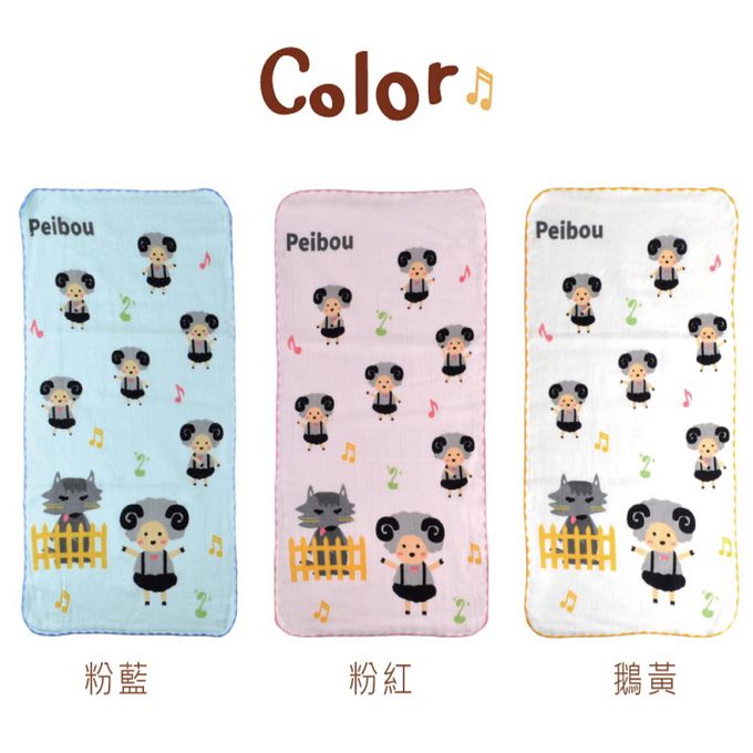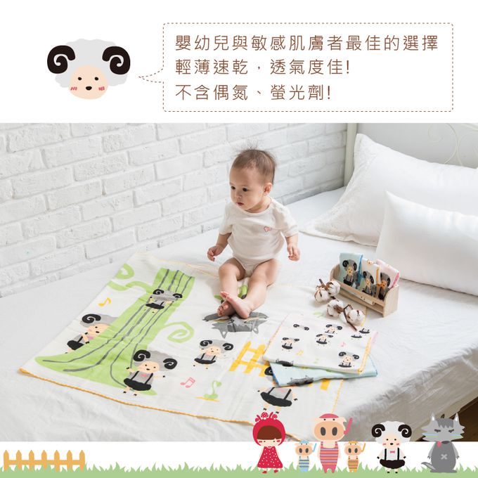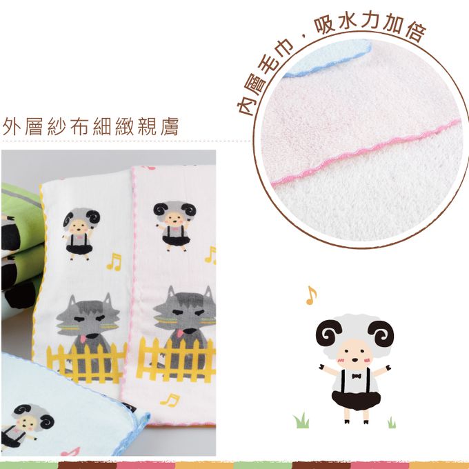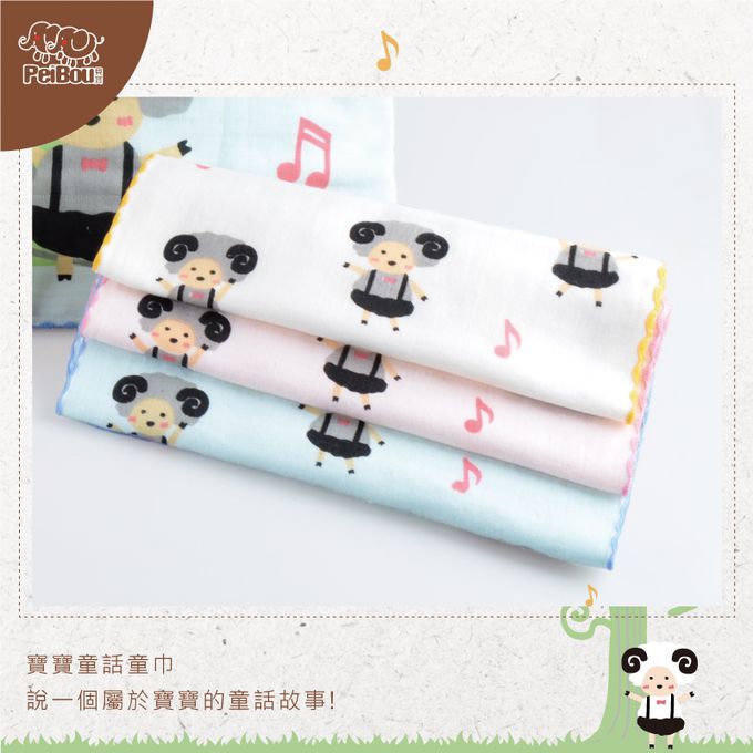 童話純棉抗菌紗布童巾3入組-七小羊-隨機色 (27x51cm)