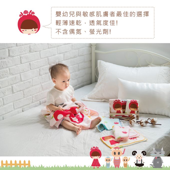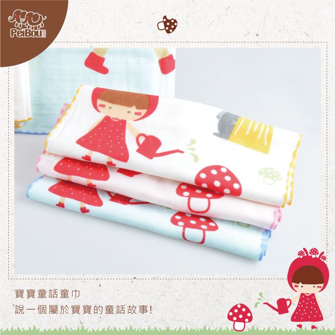 童話純棉抗菌紗布童巾3入組-小紅帽-隨機色 (27x51cm)