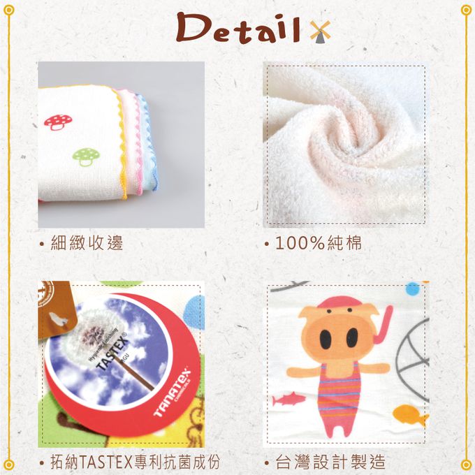 童話純棉抗菌紗布童巾3入組-三小豬-隨機色 (27x51cm)