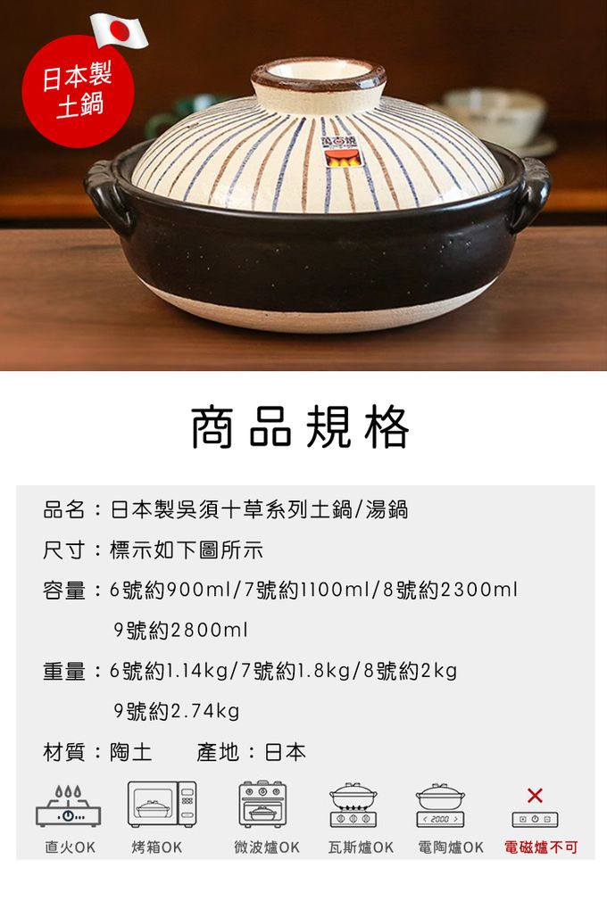 品名:日本製吳須十草系列7號土鍋/湯鍋(1100ML)