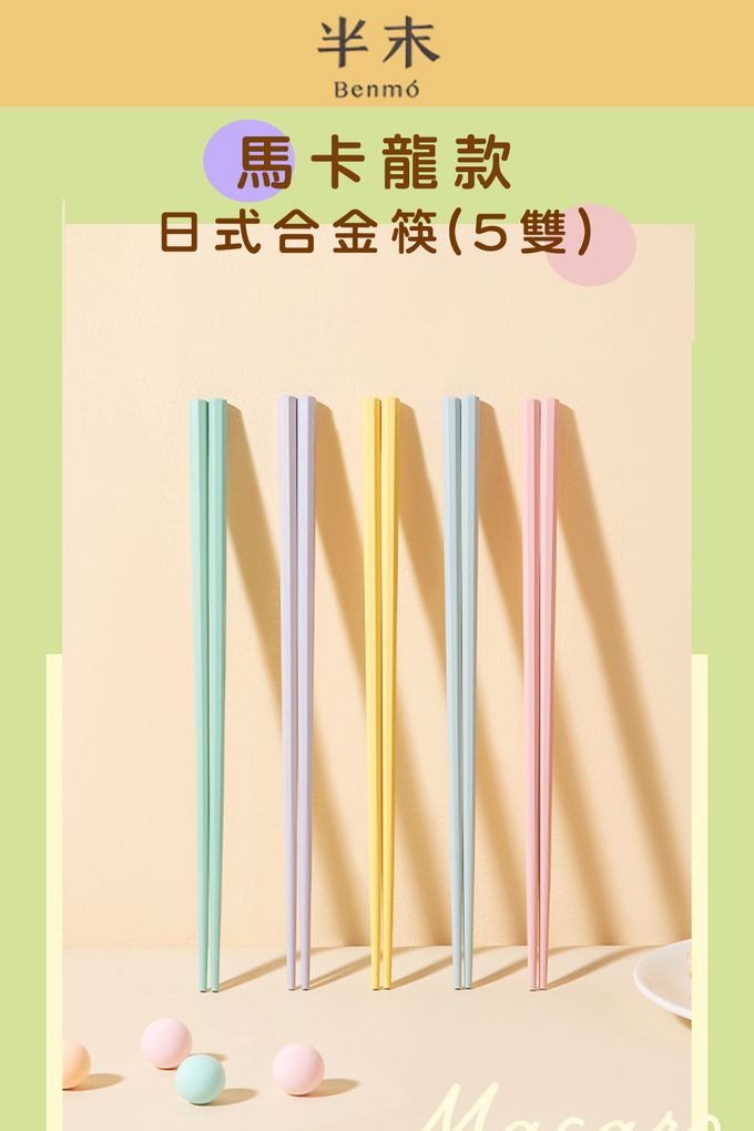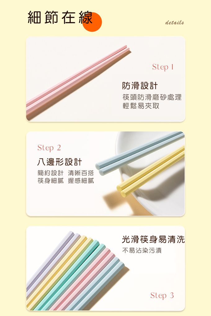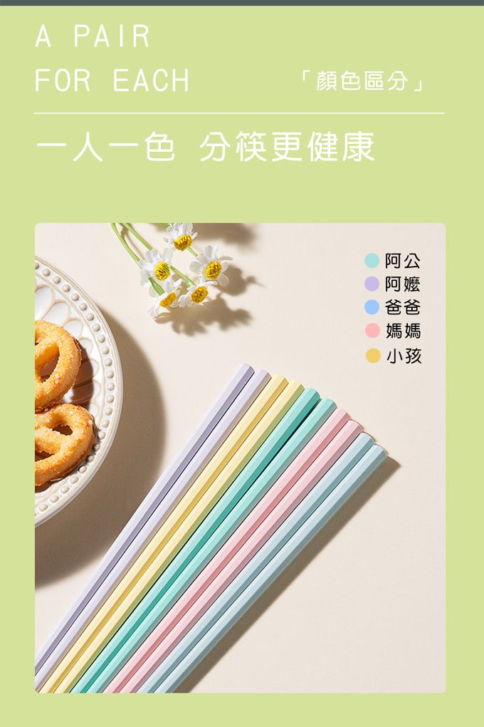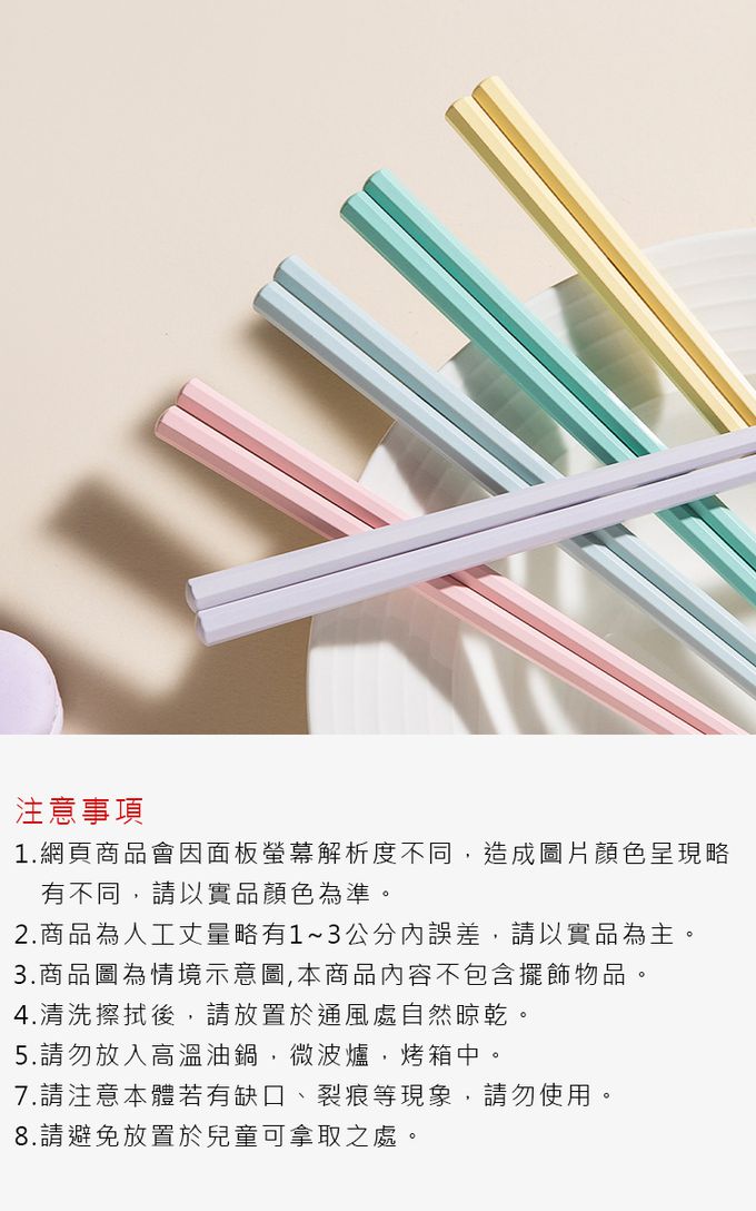 品名:日式合金筷/耐高溫防滑防霉筷/八邊形防滑磨砂 馬卡龍五色組 買一送一