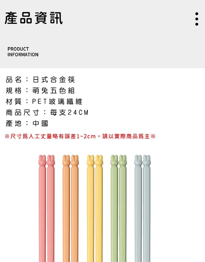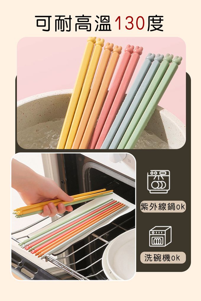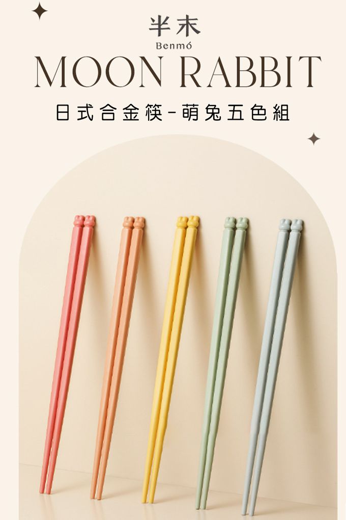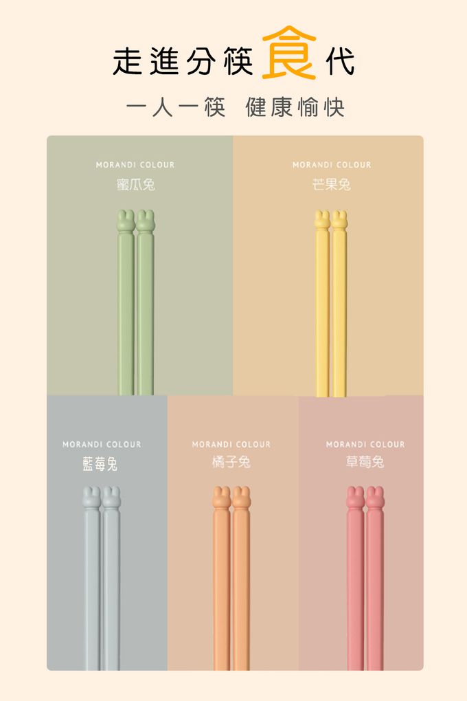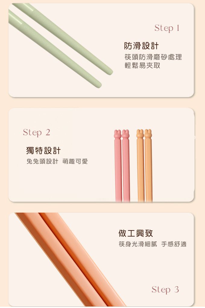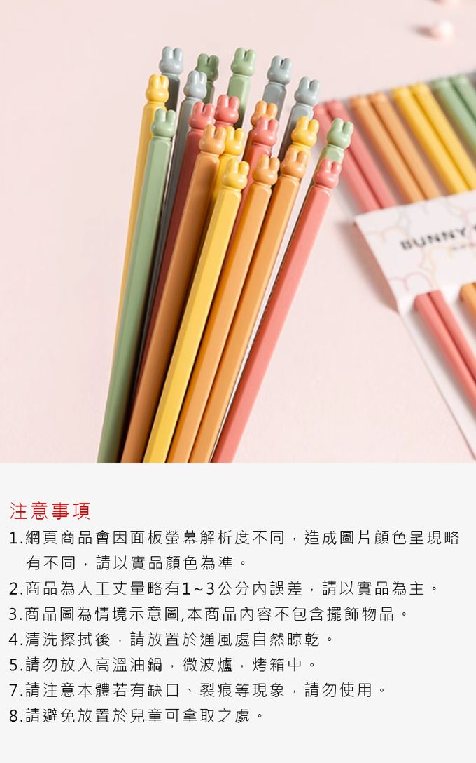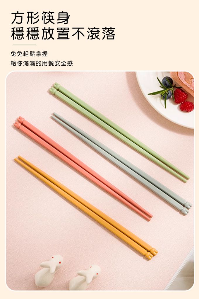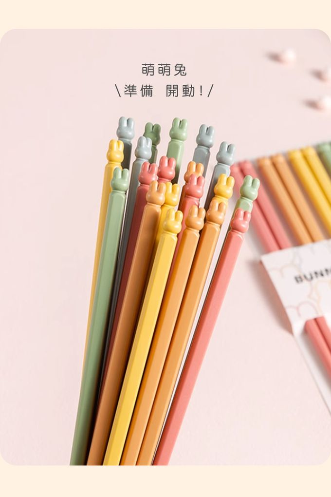 品名:日式合金筷/耐高溫防滑防霉筷/方形防滑磨砂 萌兔五色組 買一送一