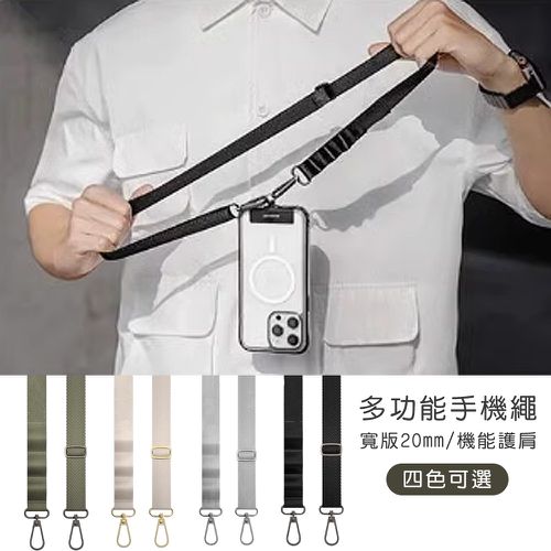 多功能手機繩/機能背帶/寬版20mm護肩/長度可調節/附贈墊片 2入組