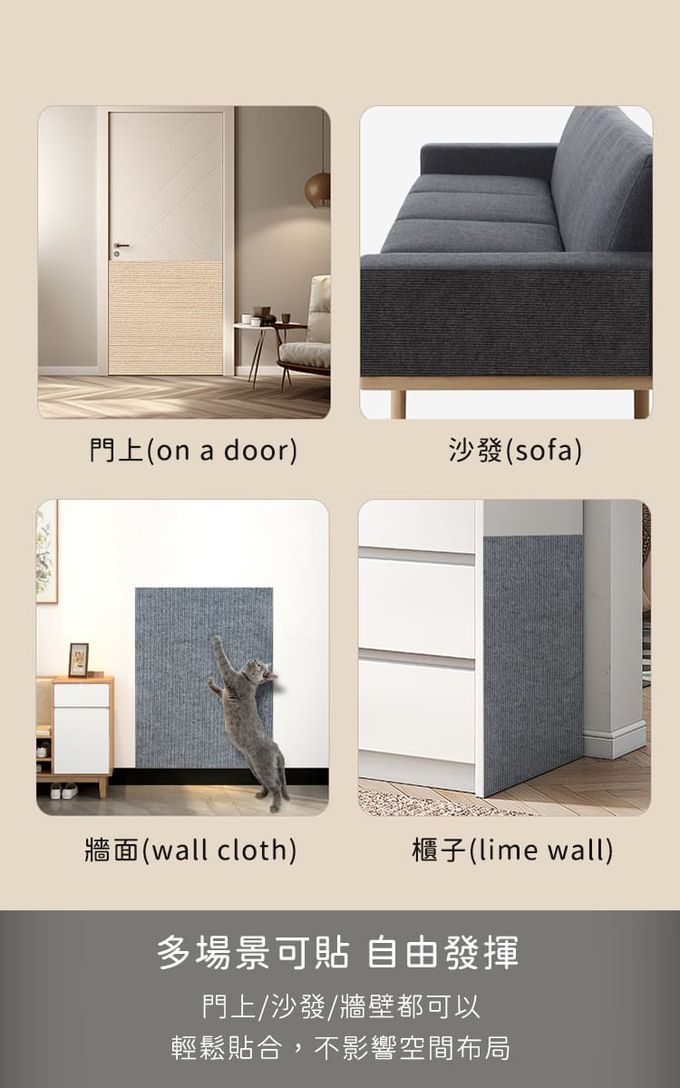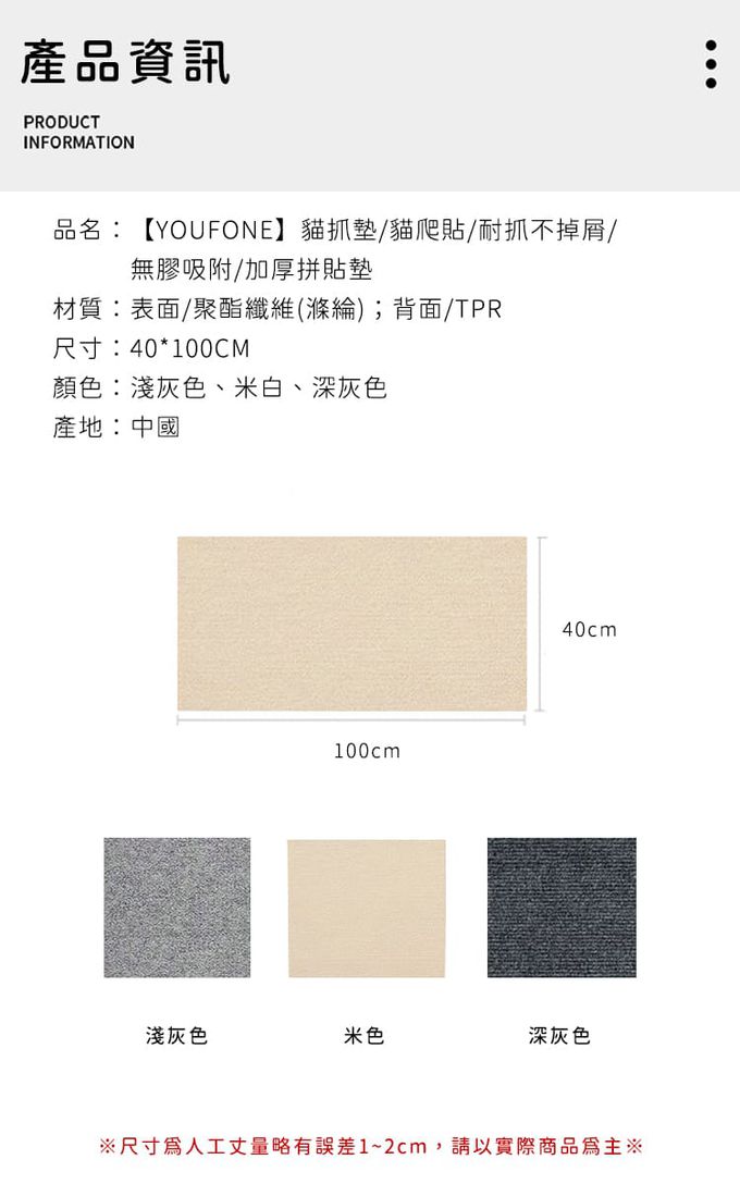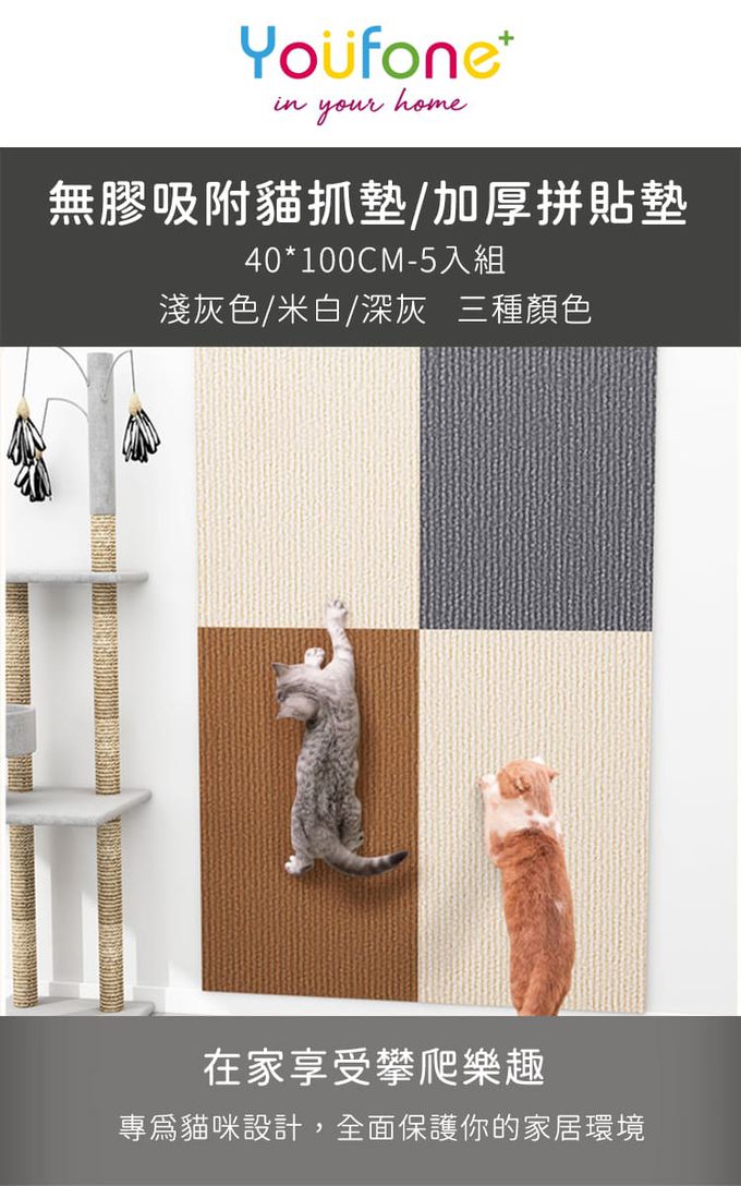 品名:貓抓墊/貓爬貼/耐抓不掉屑/無膠吸附/加厚拼貼墊-40*100CM 五入組