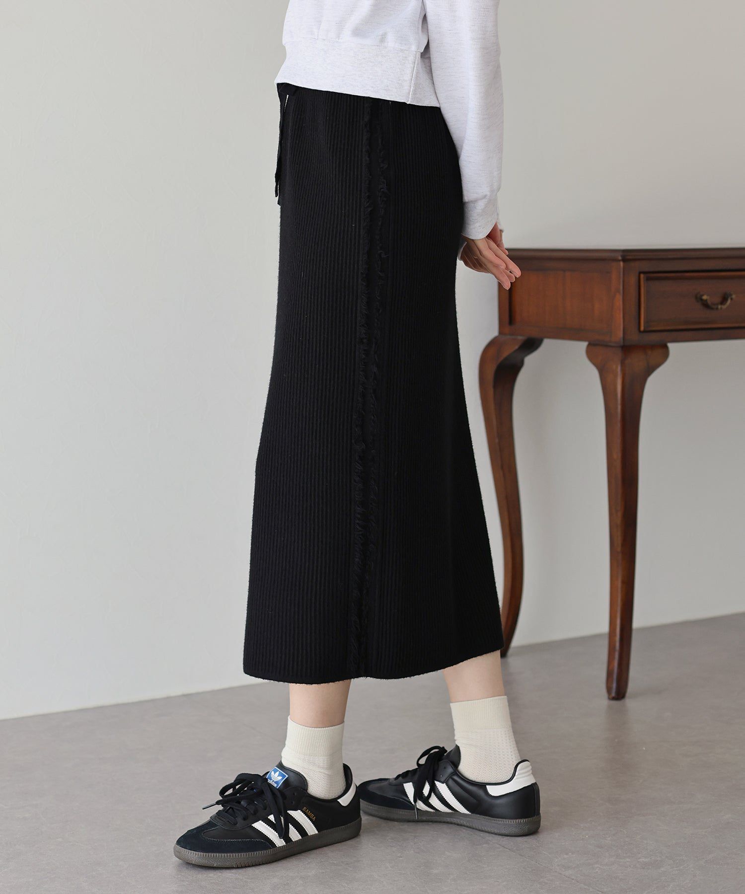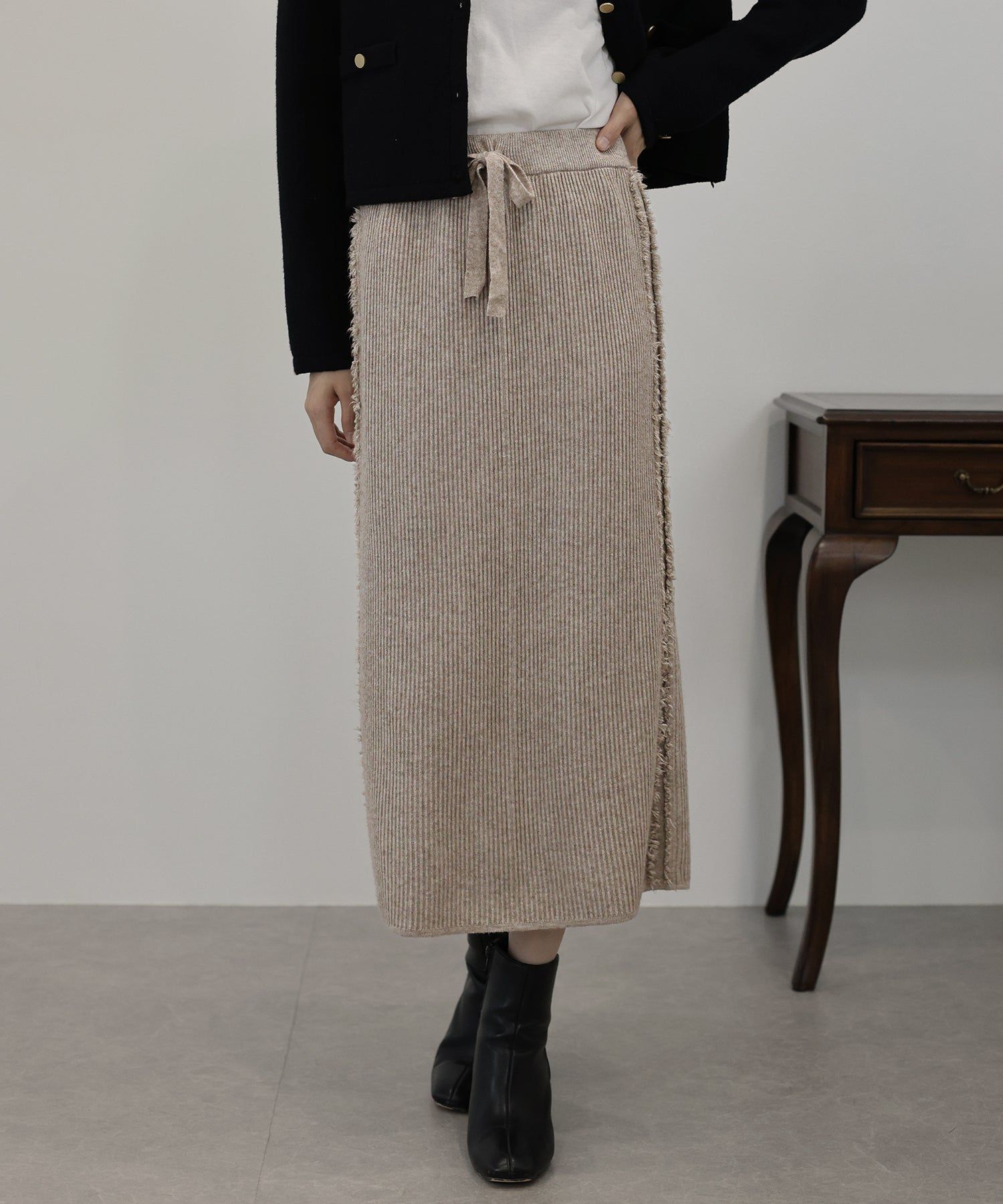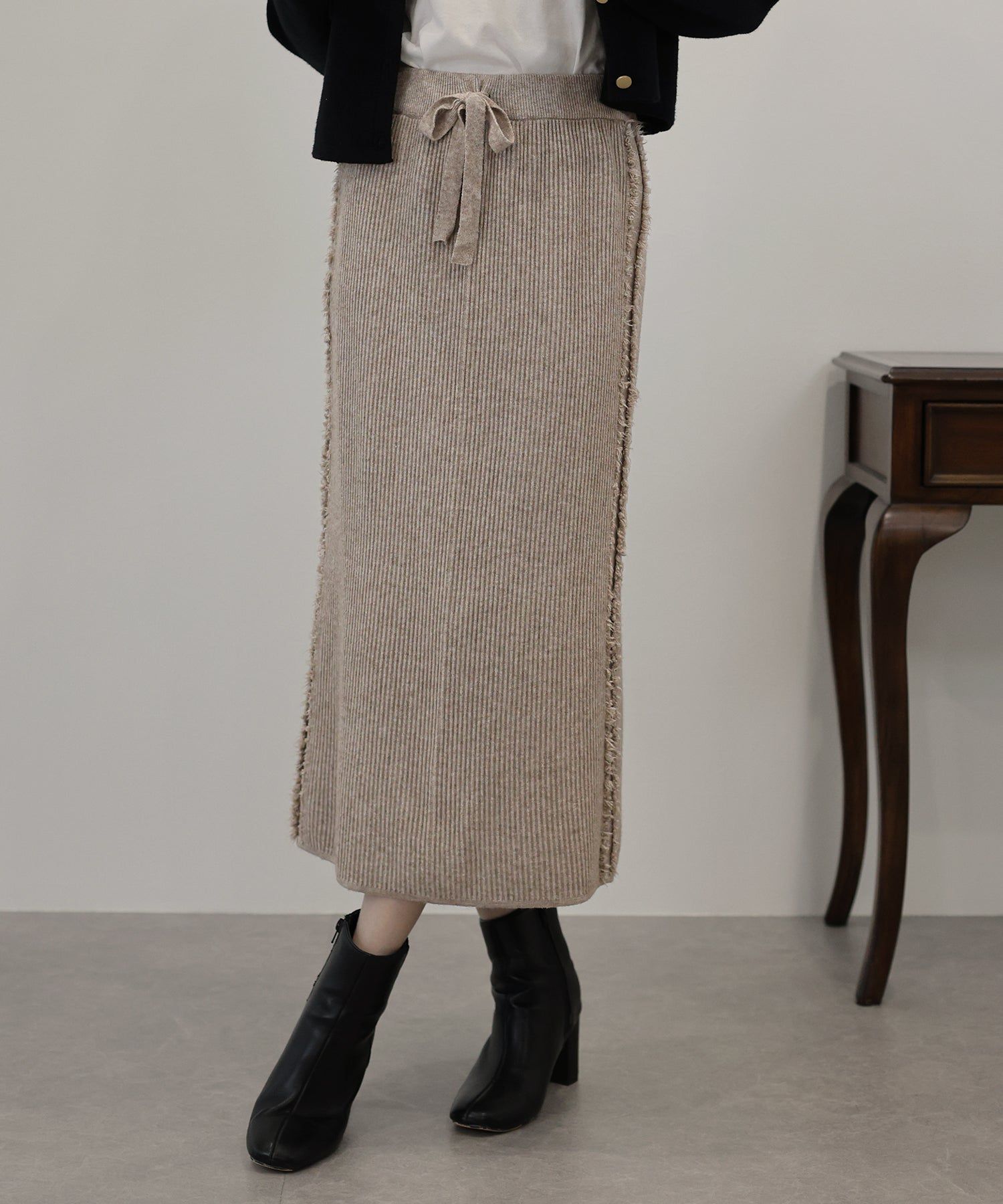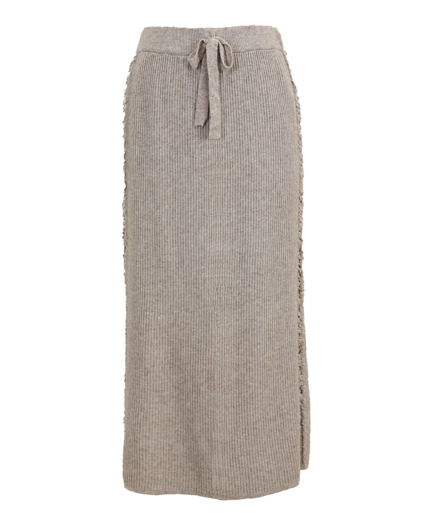 日本 BLUE EAST - 側邊流蘇百搭舒適針織長裙-卡其