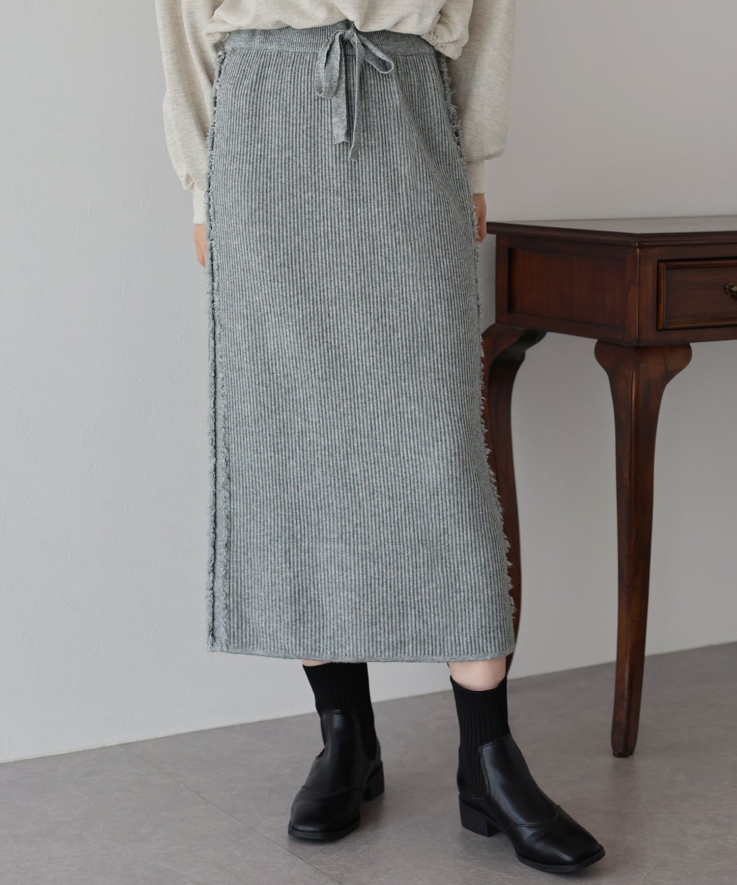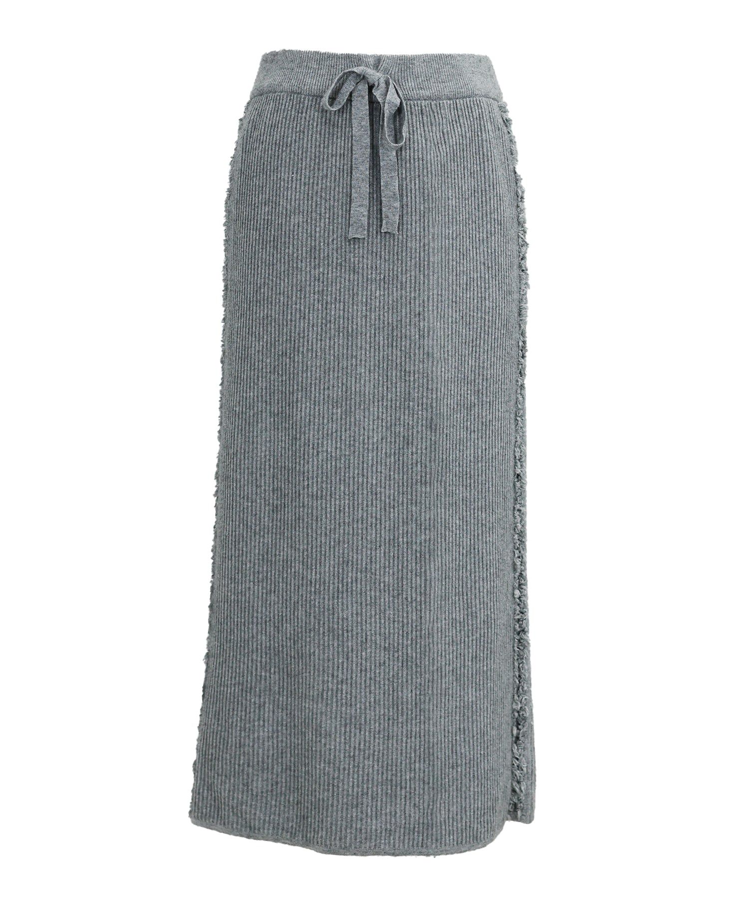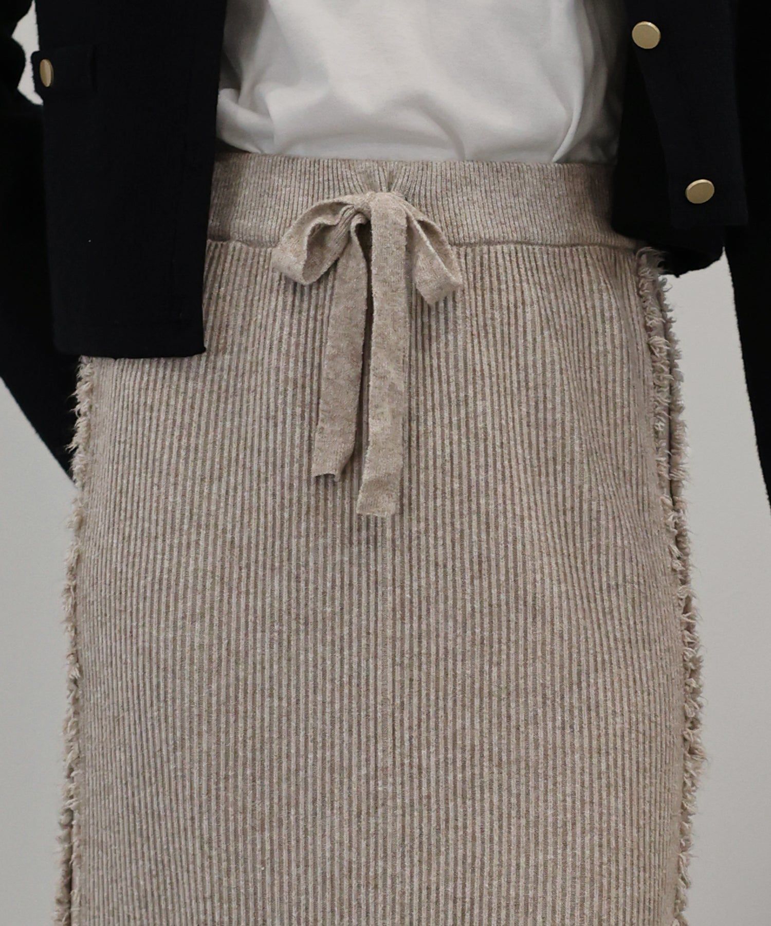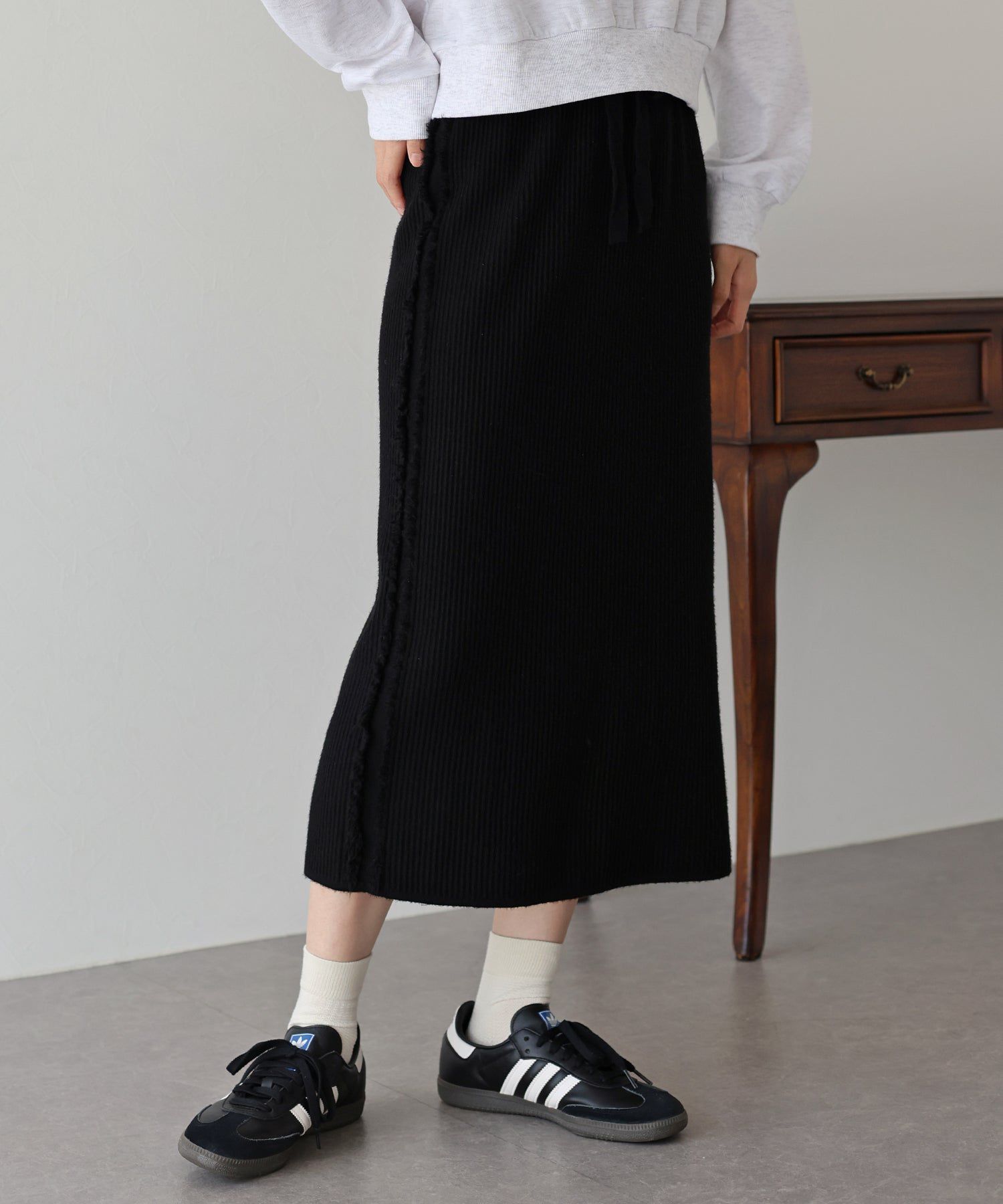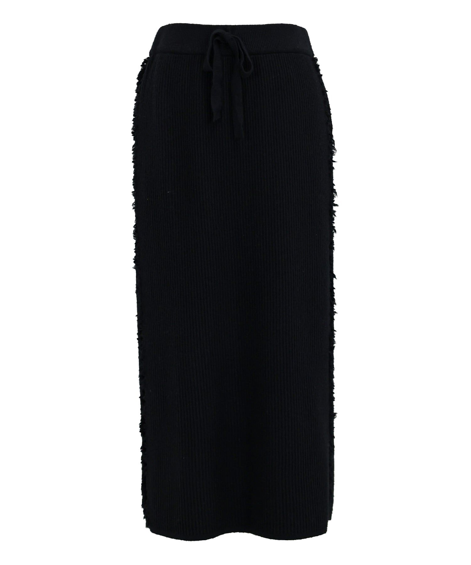 日本 BLUE EAST - 側邊流蘇百搭舒適針織長裙-卡其
