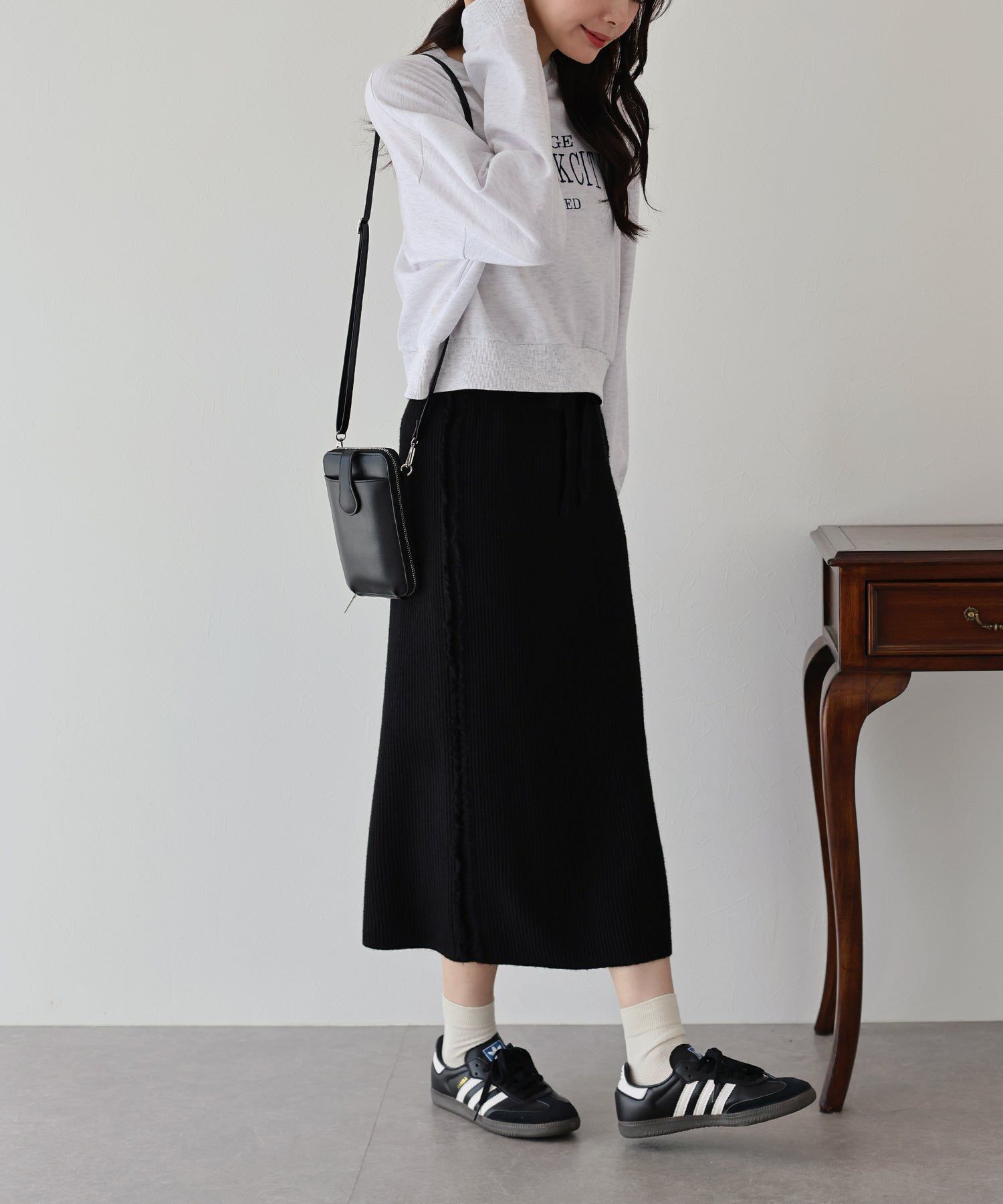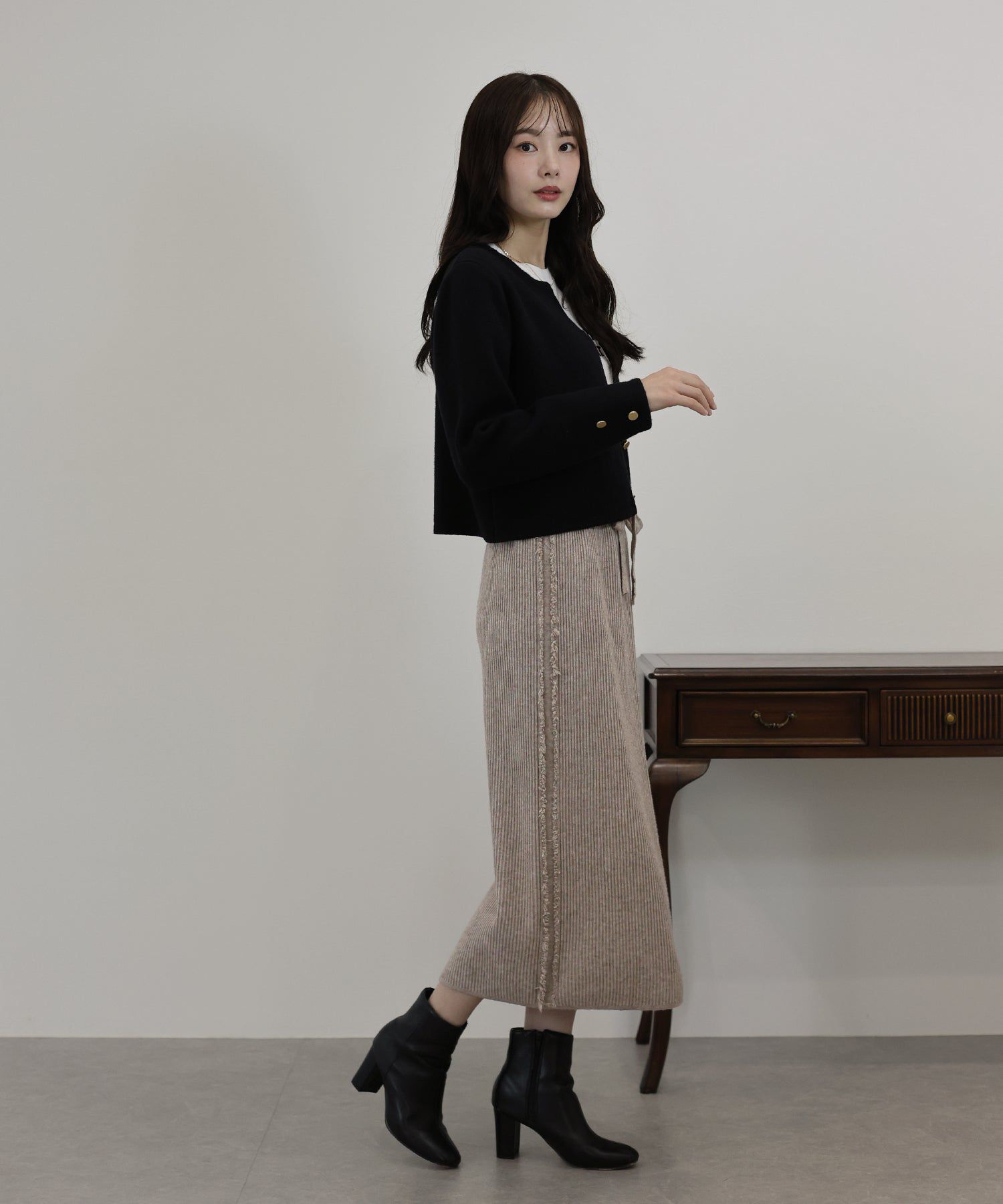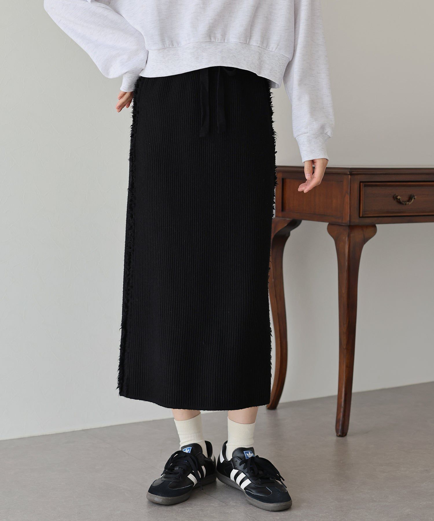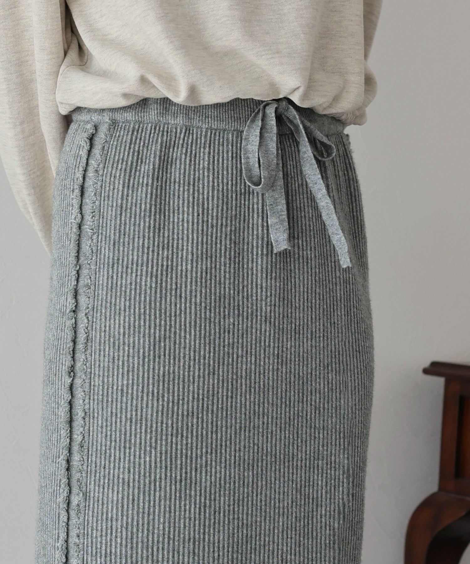 日本 BLUE EAST - 側邊流蘇百搭舒適針織長裙-卡其