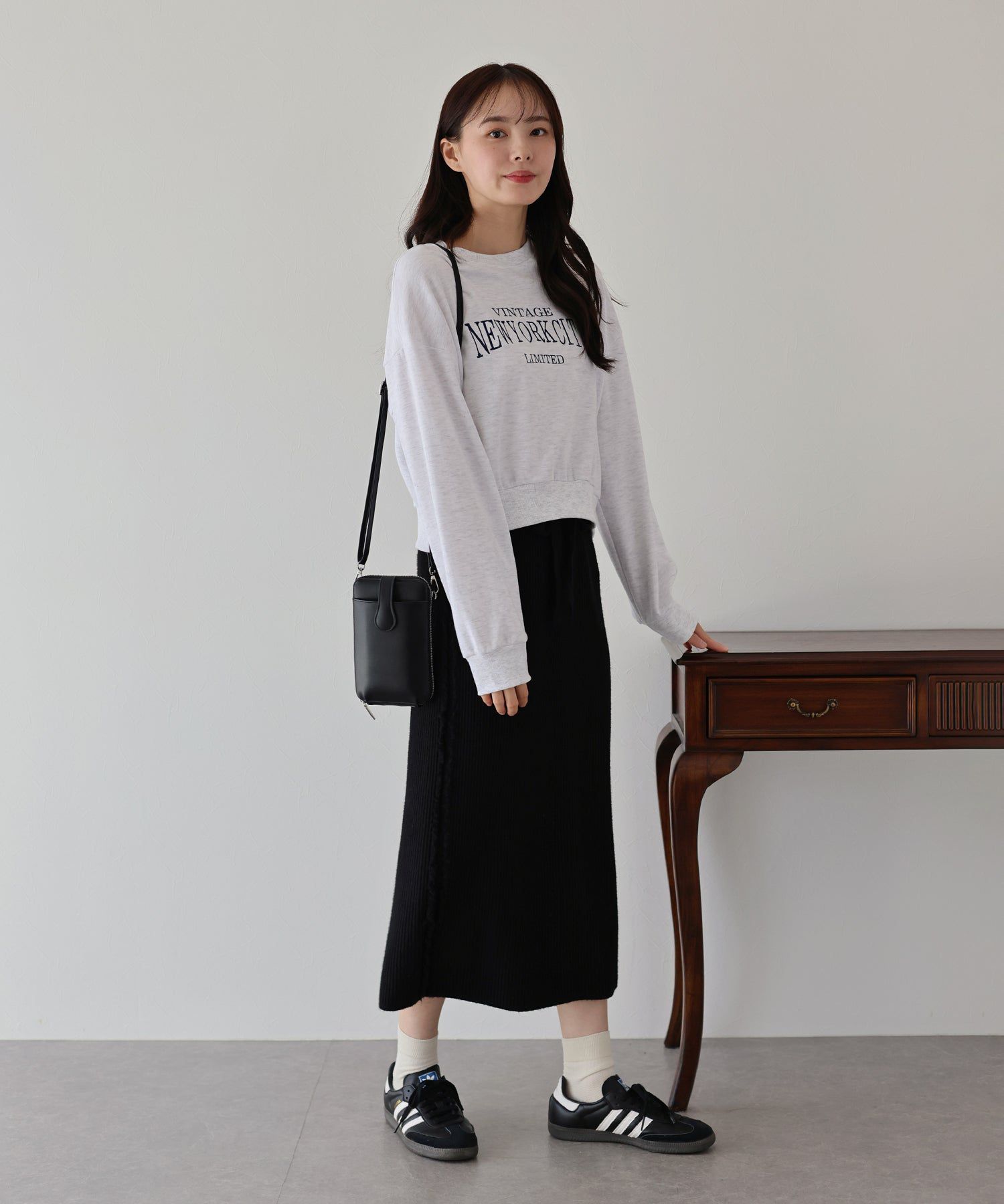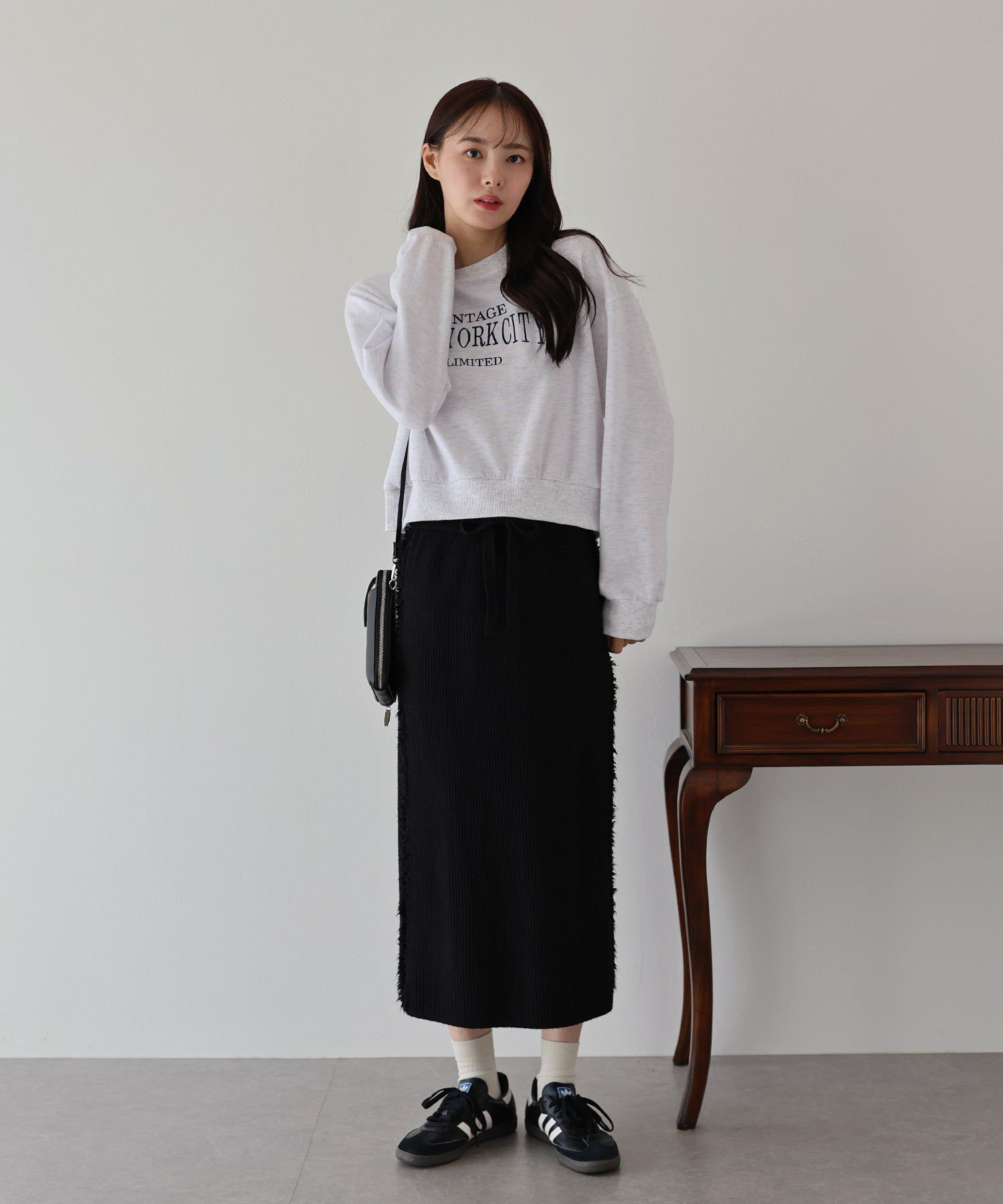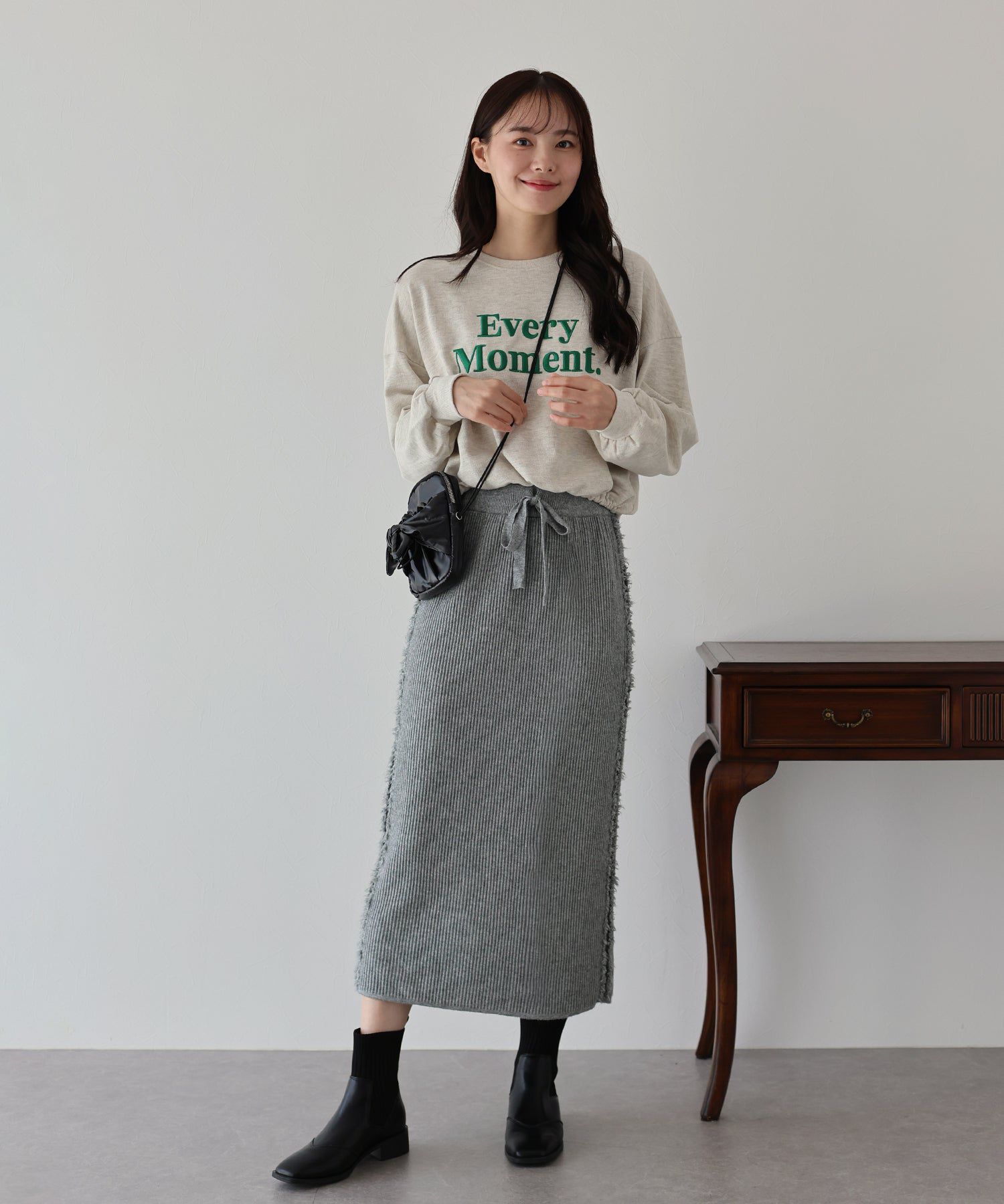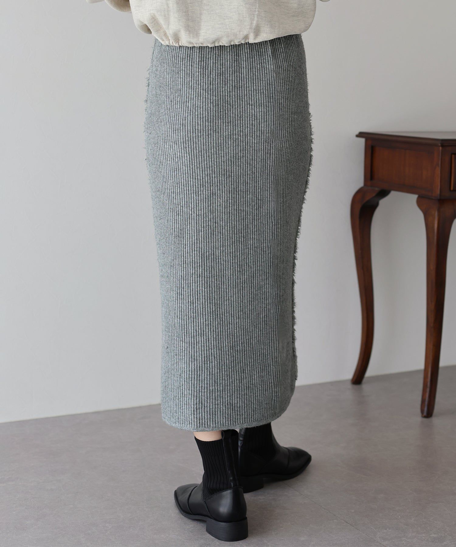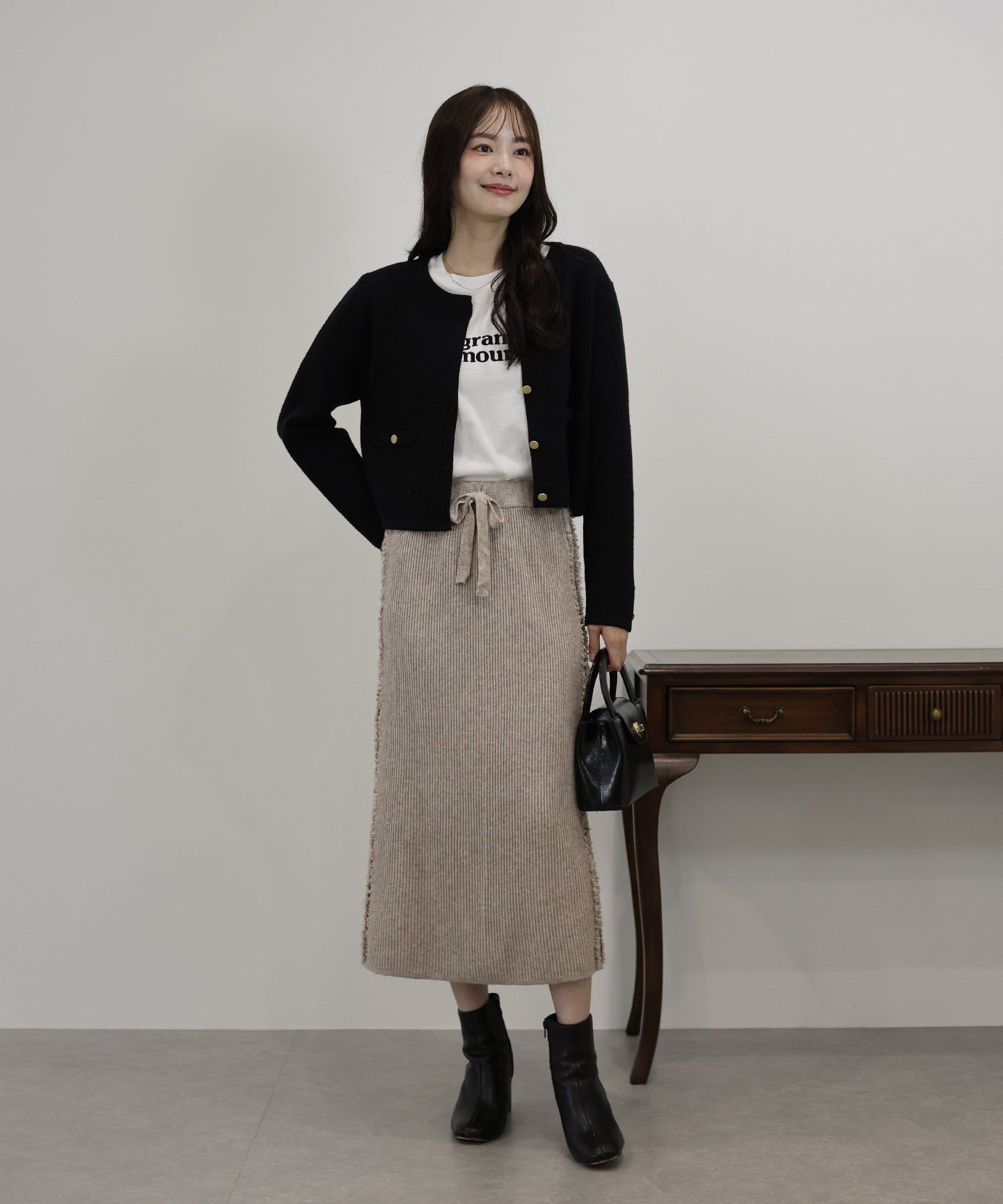 日本 BLUE EAST - 側邊流蘇百搭舒適針織長裙-卡其