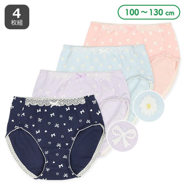 日本西松屋 - 純棉女孩內褲(4件組)-蕾絲&小花-藍紫粉系