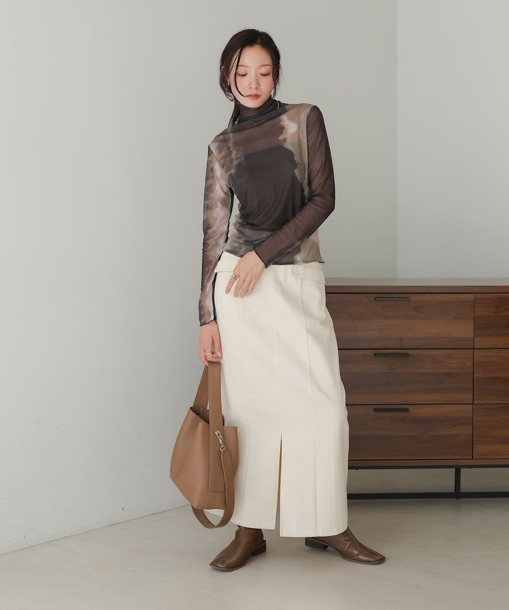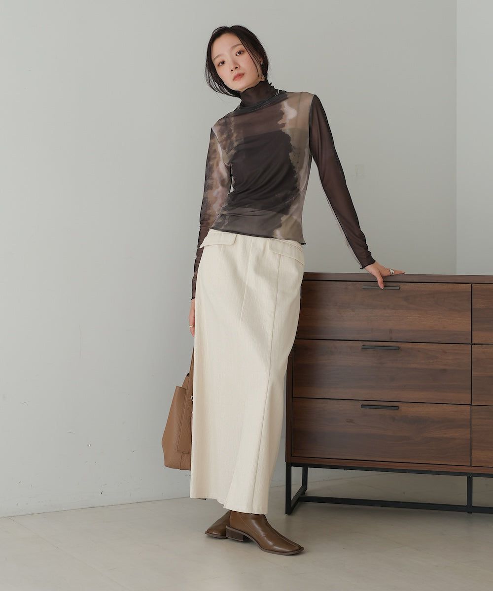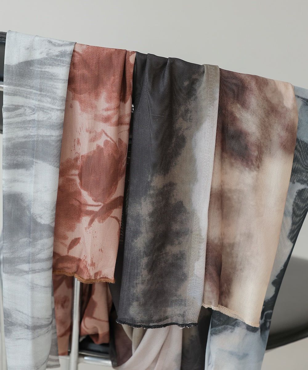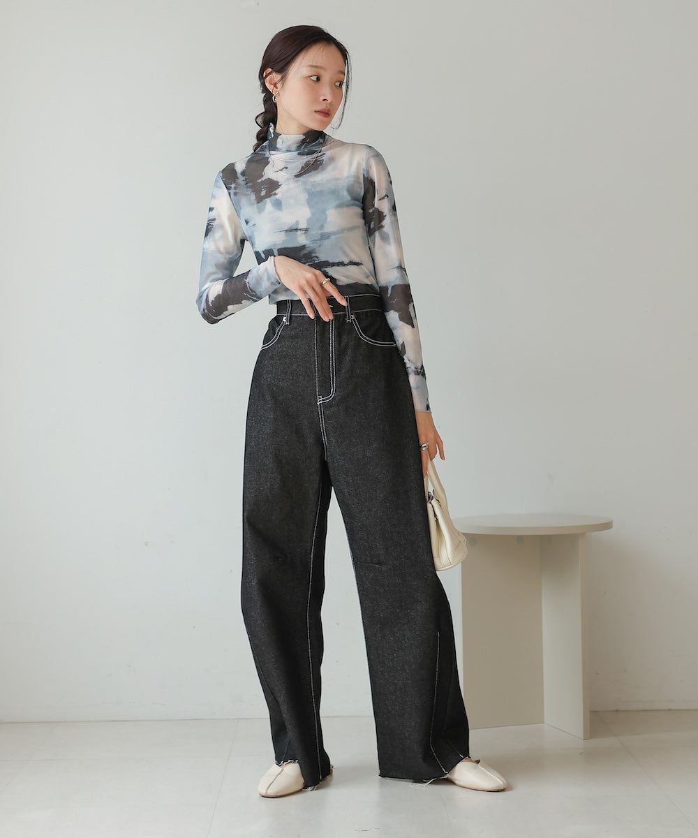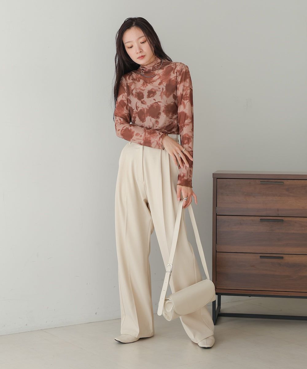 水墨暈染透膚高領薄長袖上衣