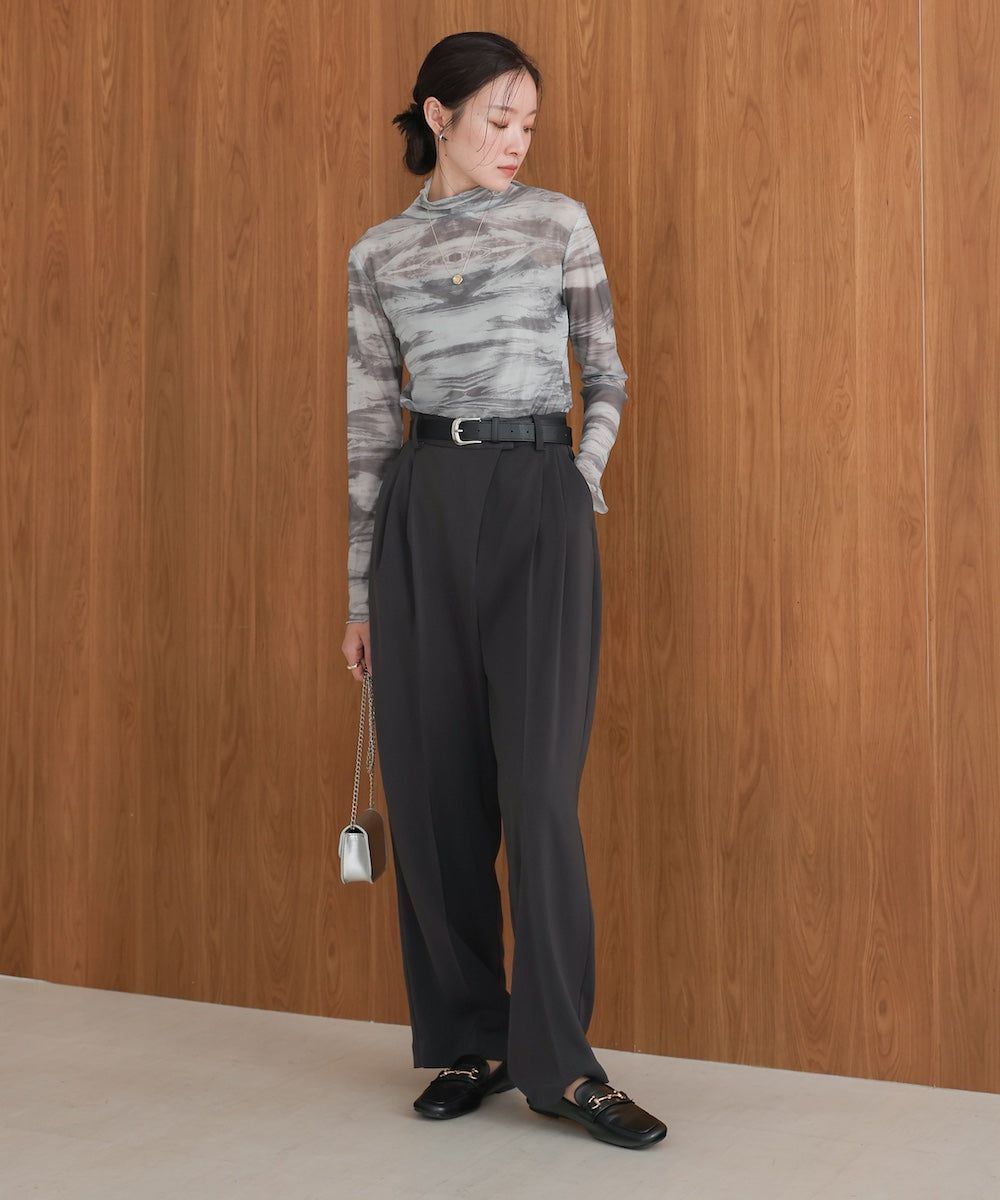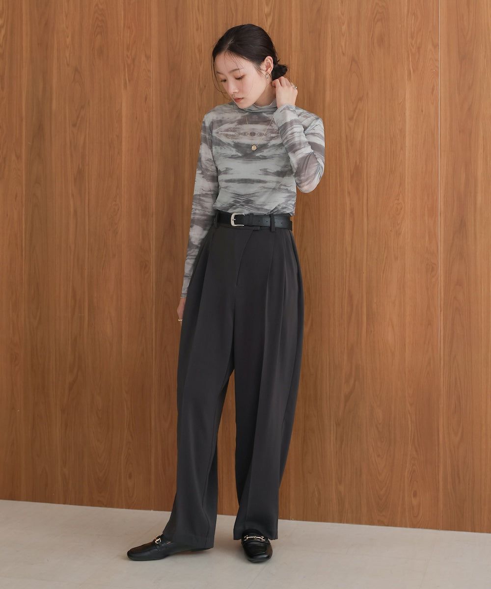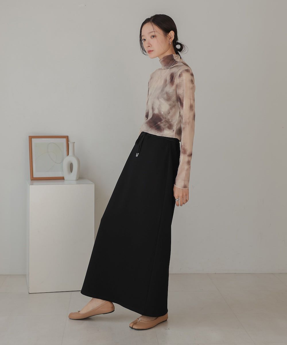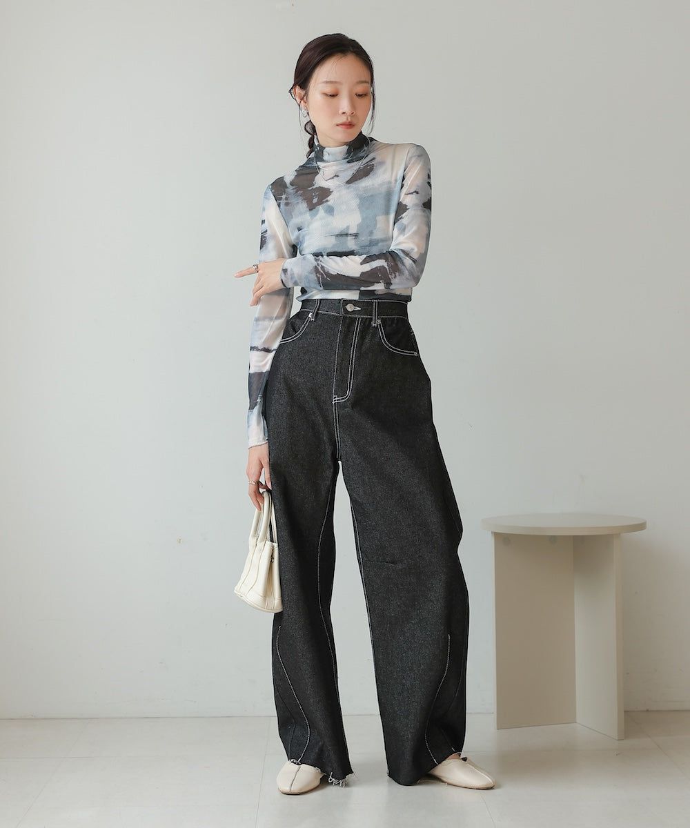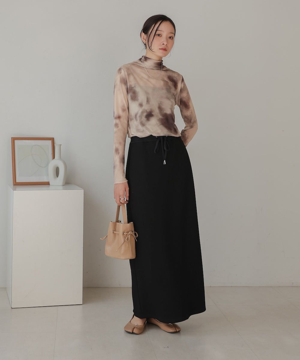 水墨暈染透膚高領薄長袖上衣