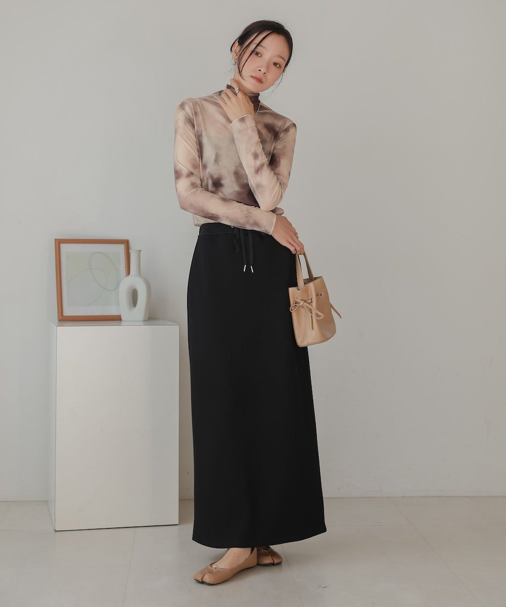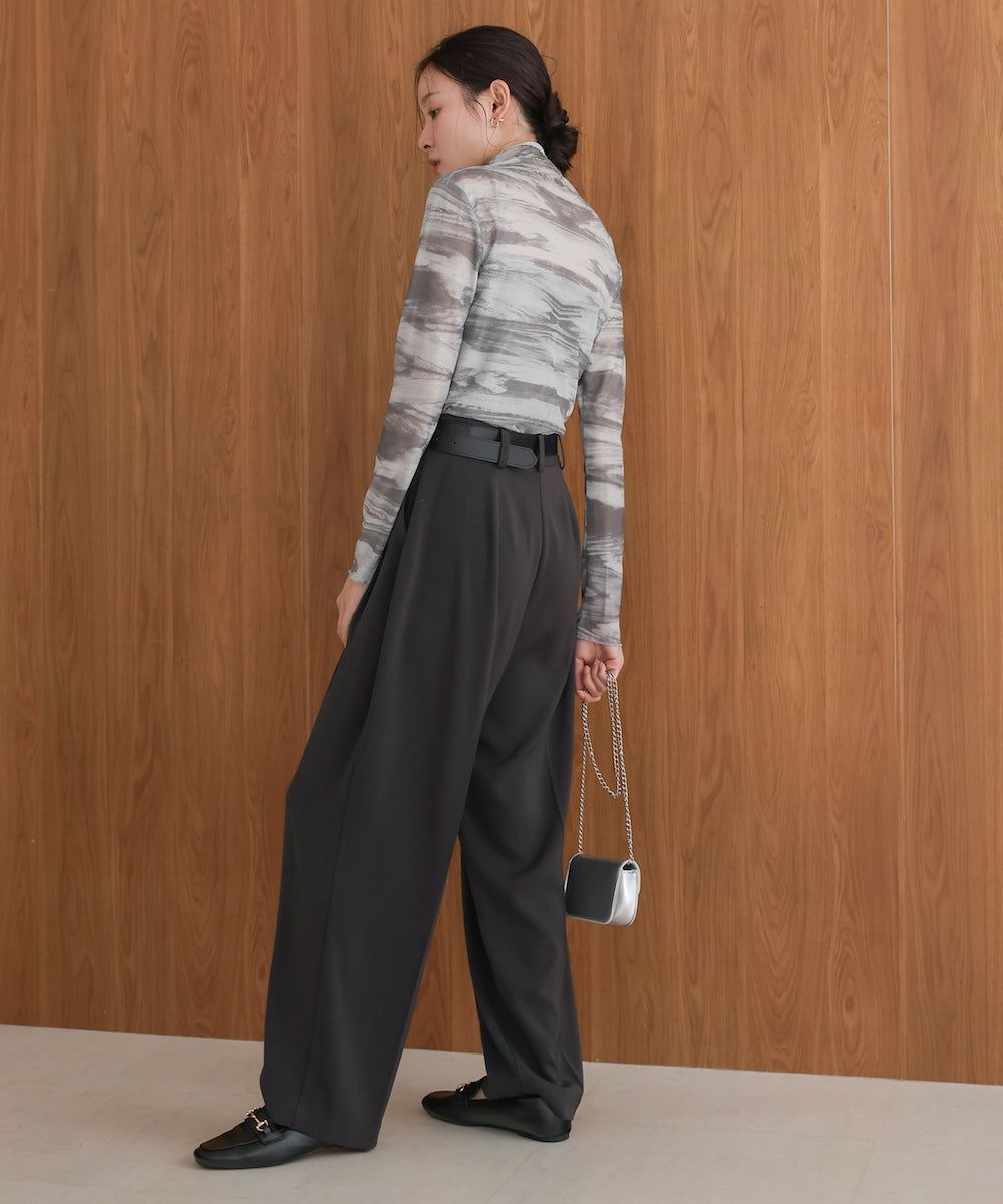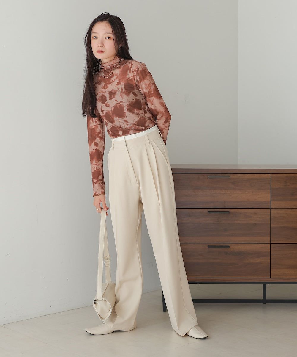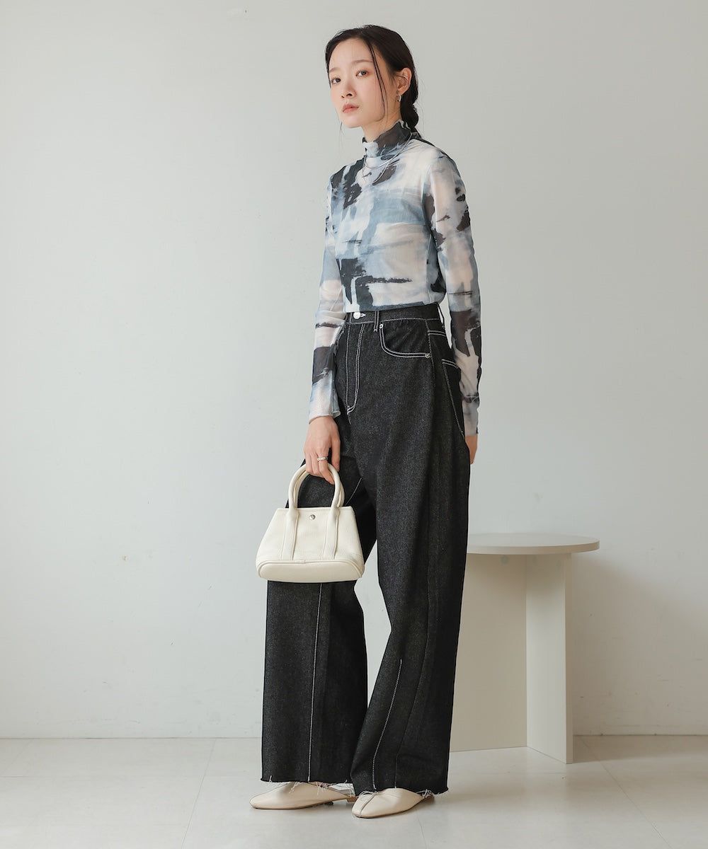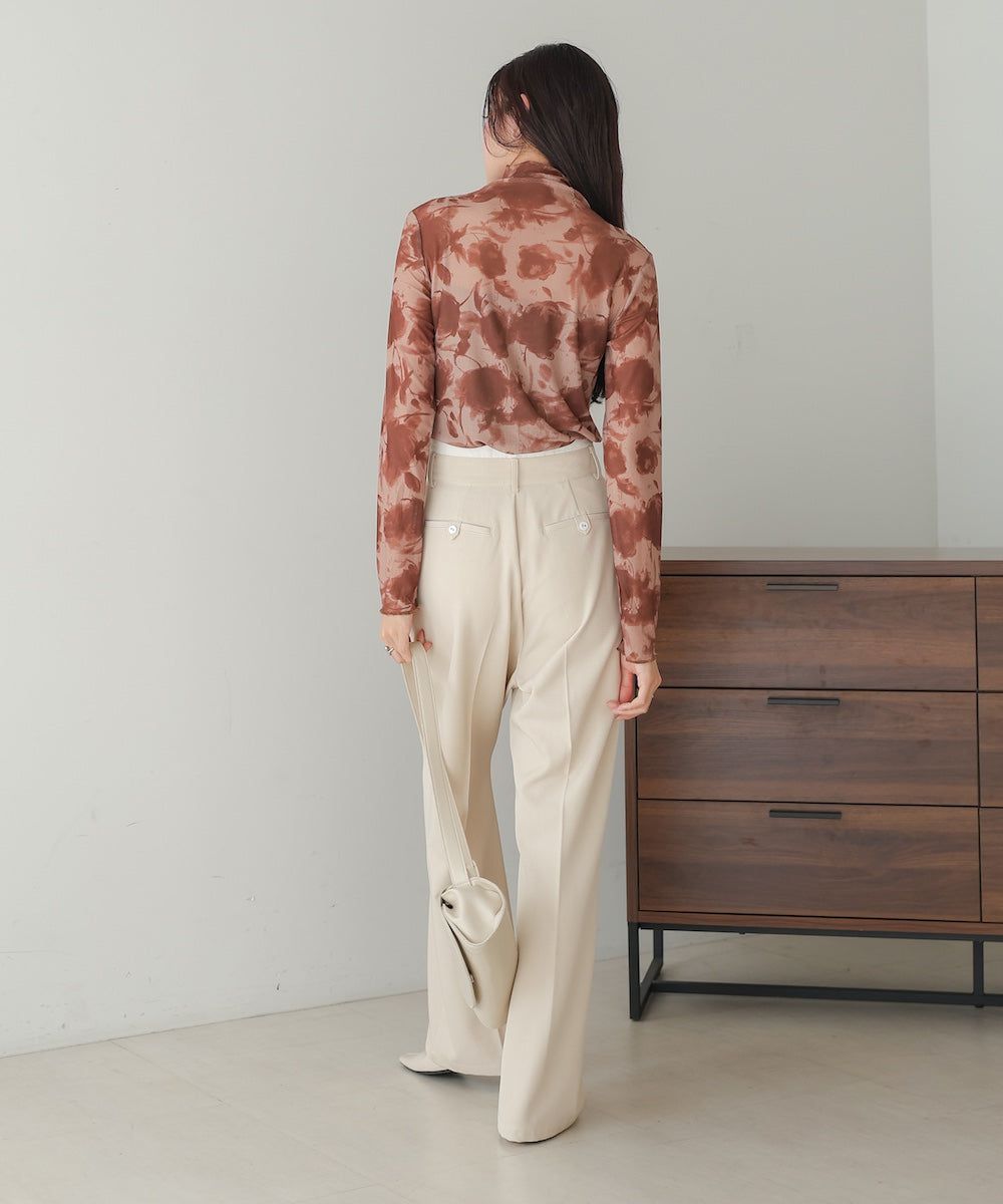 水墨暈染透膚高領薄長袖上衣